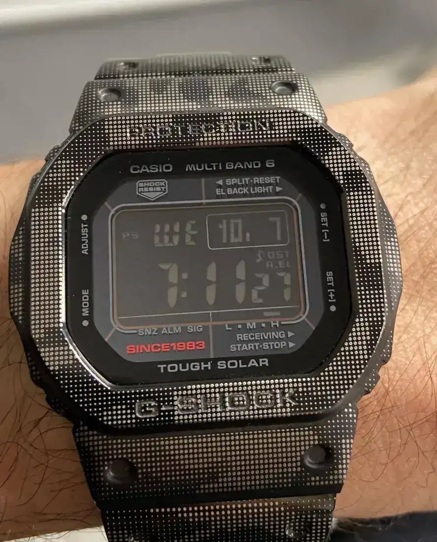 La base es un gw-5035a-1jr al que he quitado su bisel y correa de color negro y le he montado un conjunto de titanio que compré en una plataforma china [emoji2958], jejeje: