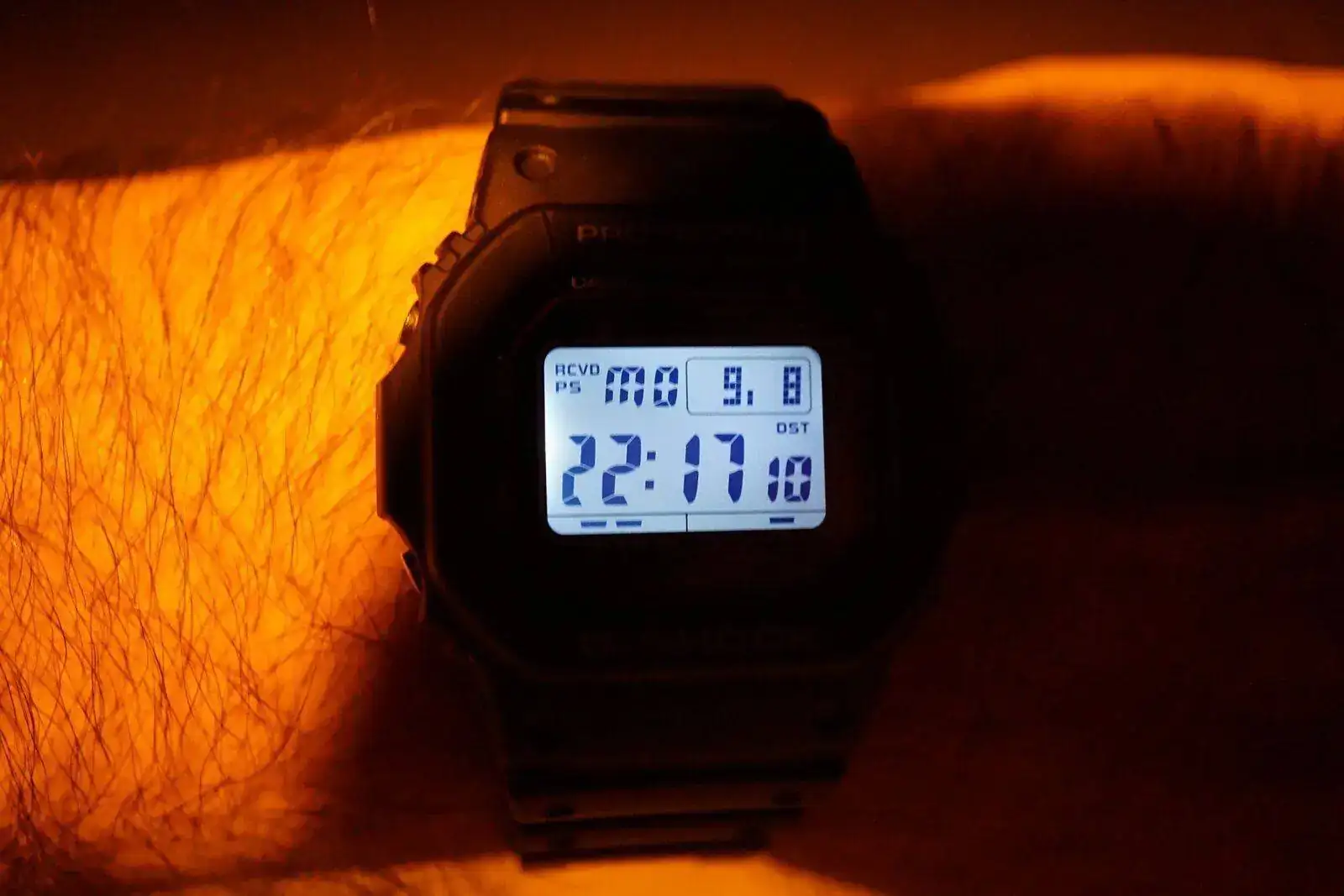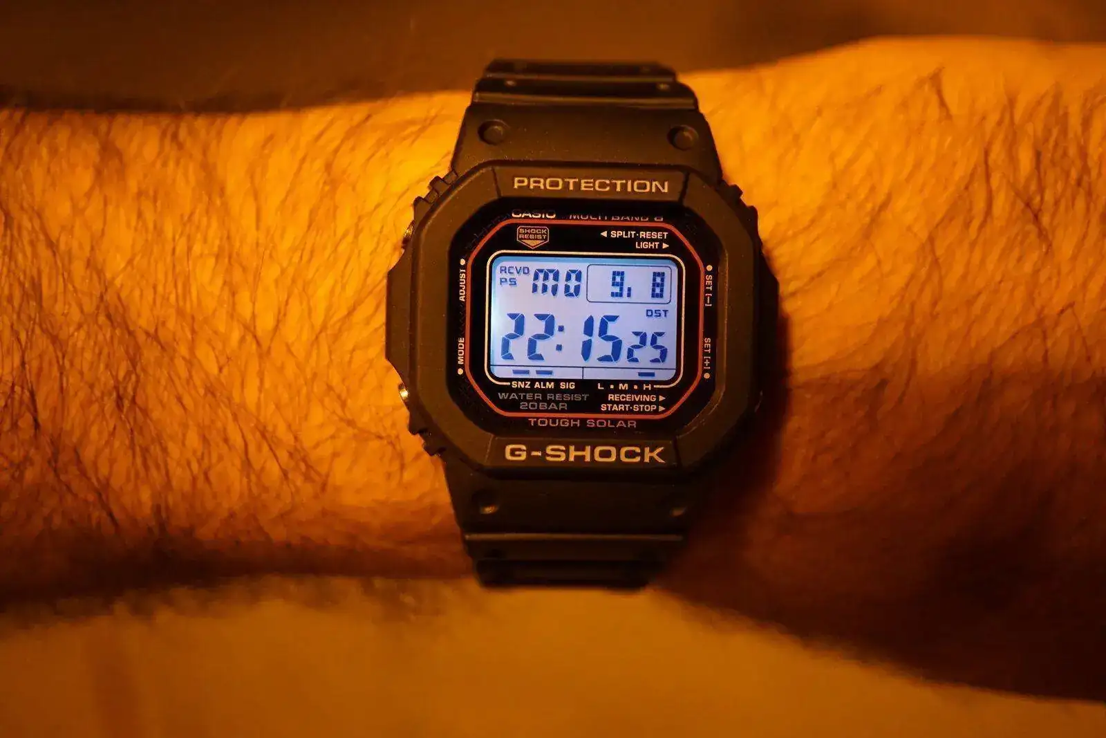 Por fin veo como es la luz Led del nuevo 5610U. Veo que es la misma que la del GMW-B5000.Recibe la señal horaria todas las noches con una facilidad asombrosa, lo digo porque duerme siempre en muñeca...puede ser casualidad, ya veremos.