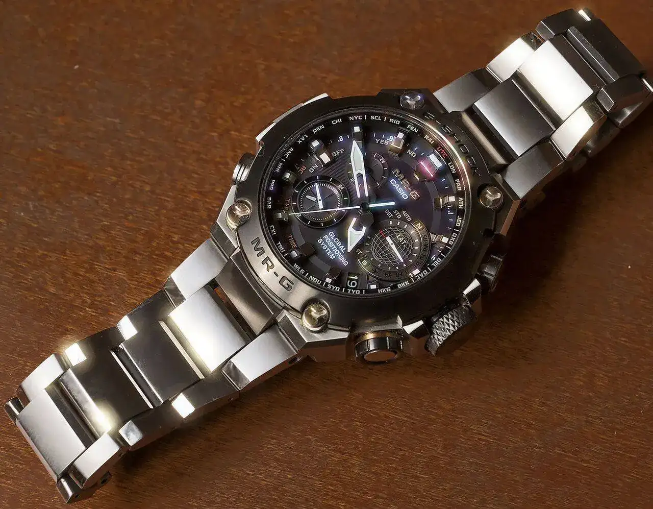 Yo creo que los MR-G son los relojes "mas duros jamas construidos".. el grosor del Titanio 64 con DLC es impresionante.. y el Bisel esta construido con el metal de la Katana japonesa, tambien notas el grosor y el tratamiento del Zafiro, esta claro que son muy caros pero se justifican los precios.. cuando montan el "Global Positioning System" GPS.. hice hace unos dias unas fotografias para buscar efectos de luz y de reflejos multicolor