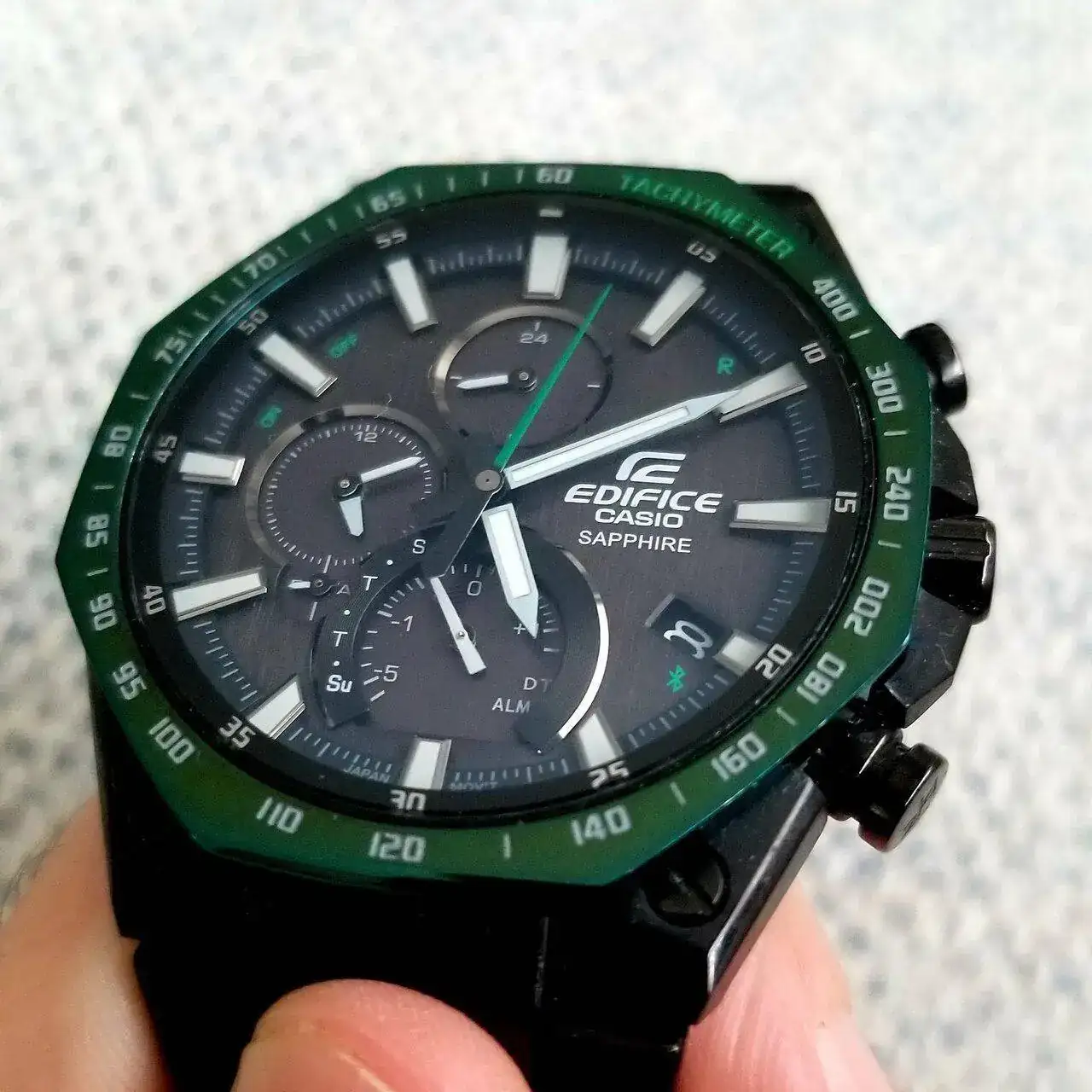 Lo que más me gusta de este Edifice es su espesor. Un reloj realmente bajo, para la tecnología que lleva (bluetooth, solar); realmente ligero.
