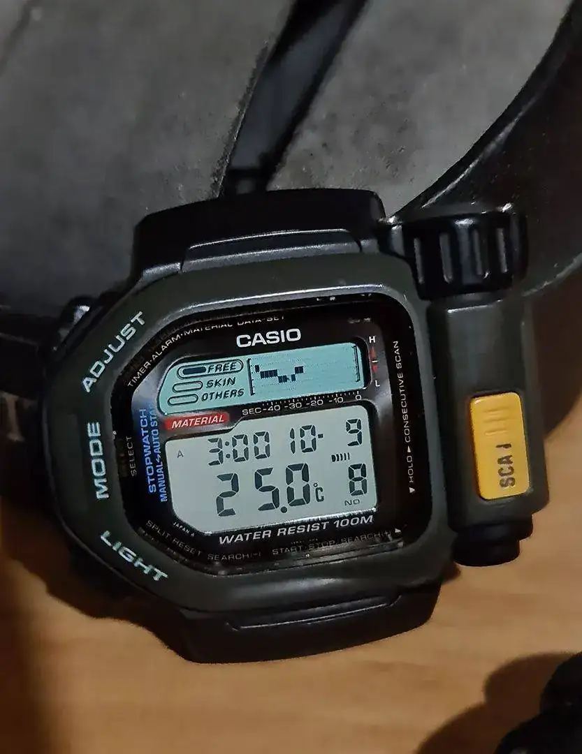 Vaya colección que casio tienes!!!!!!! es un espectáculoHoy recuperé (reparé) 2.. también el Thermo Scanner T SR 100.. Vintage 90s, a este le fallaba la placa faja de conexión al Sensor de temperatura