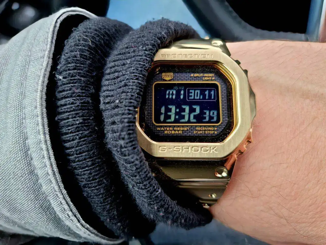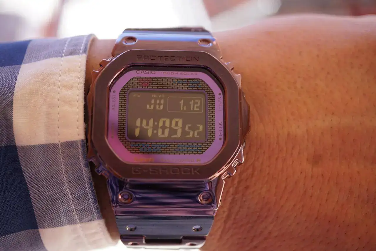 MR-G (adelanto las manecillas para que no interfieran puntos vitales de la esfera) * la manecilla del dia de la semana a Viernes para no tapar la linea roja que cae en Jueves (hoy)