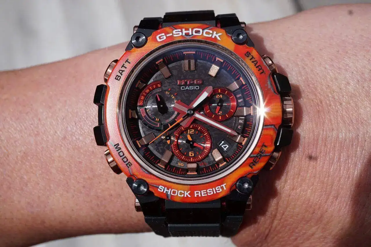 Me sorprendió la primera vez que lo vi, en foto me llamaba mucho más el MudMaster, de hecho este Mtg no me despertaba la mas mínima curiosidad, cuando fui a Baroli pregunte por el MudMaster Flare Red y sin pedirlo me sacaron también el Mtg...ya me gustó en mano, pero en muñeca es aun mejor, no me canso de mirarlo, cuando le da la luz del sol directa saca todo su potencial estético, el verano es suyo.Me pone burrete..enhorabuena