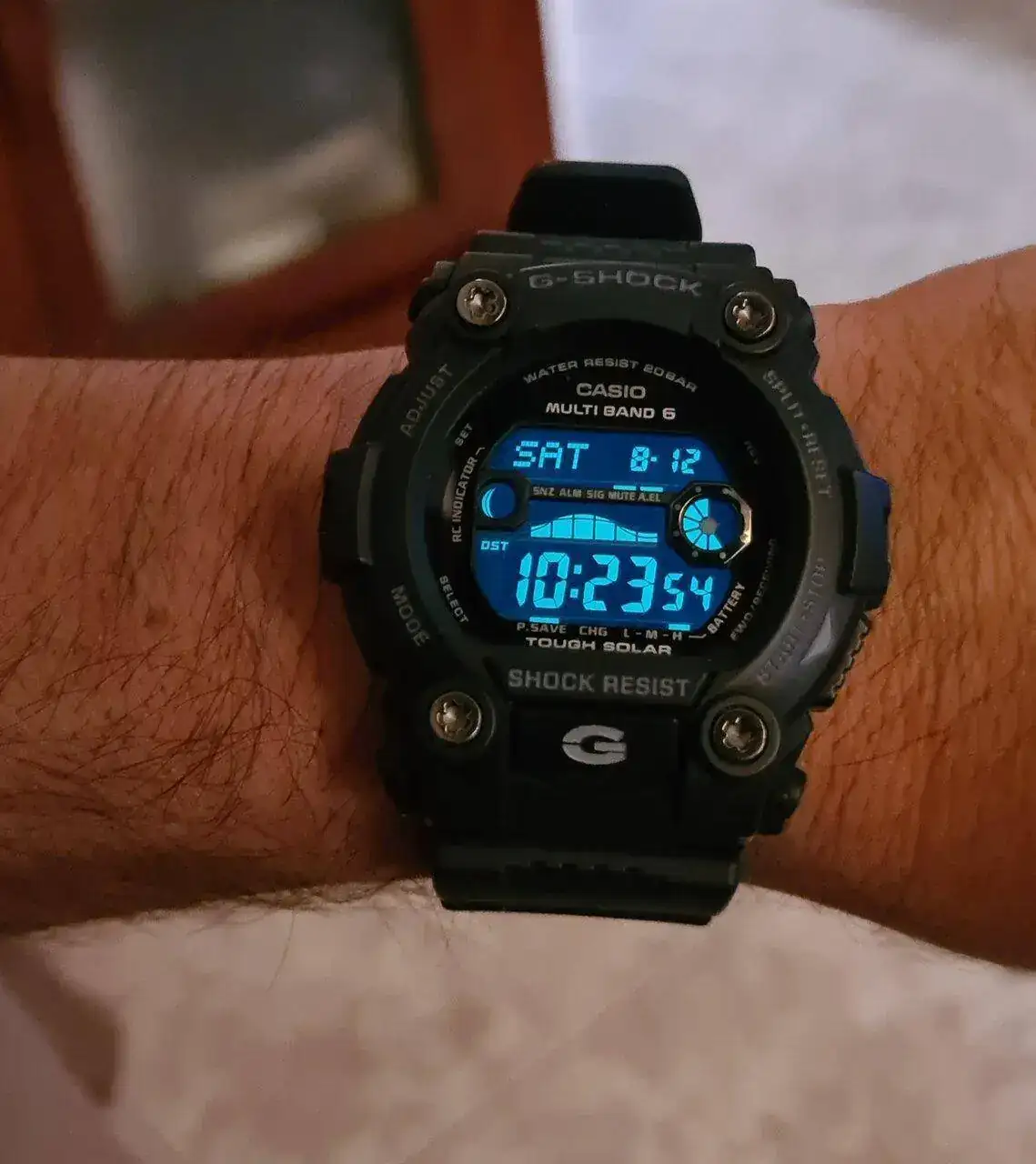 ¡Muchas gracias! El DW-6900PL-7 es de la serie polarizada de hace unos años. El color azul se vuelve verde coral según por donde le venga la luz. Pasa de parecer una piscina a parecer una cala marina preciosa de aguas azul verdosas . Es mi G-Shock más veraniego, muy alegre y muy refrescante, me encanta usarlo en esta época.En encantan todos, el 6900 chulisimo en blanco y el ProTrek me vuelve loco