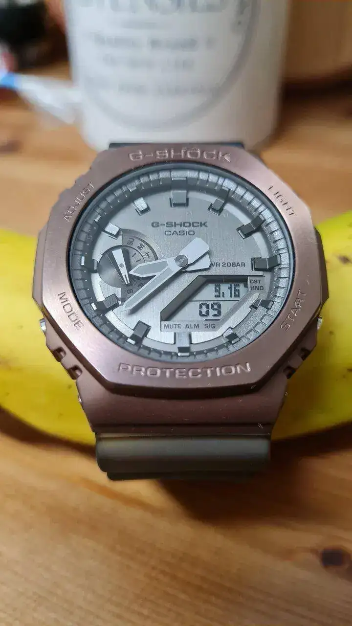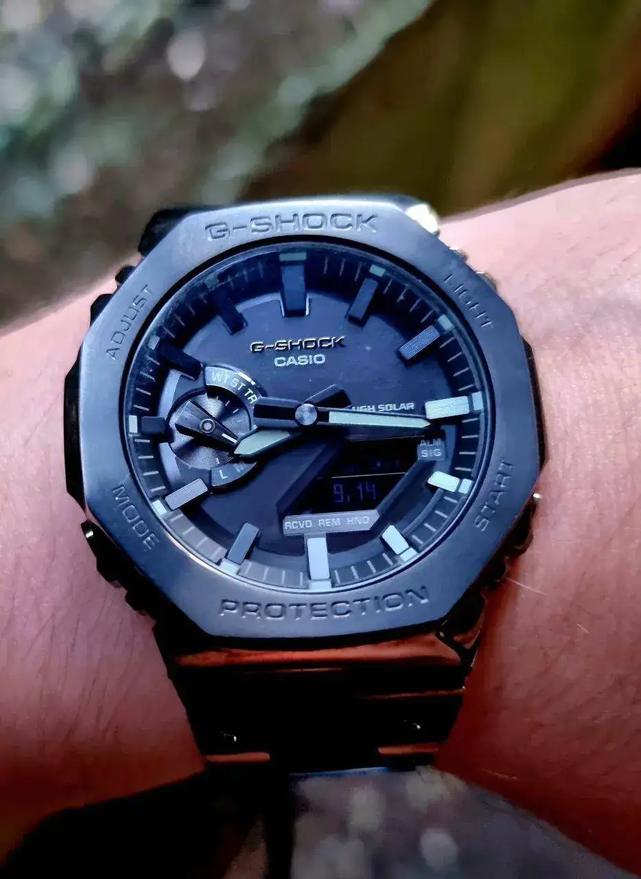 Mira este también de metal¿Es el Gm-B2100bD-1a? ¿Que tal se ve la hora en ese modelo en condiciones de baja luminosidad? (agujas e indices)