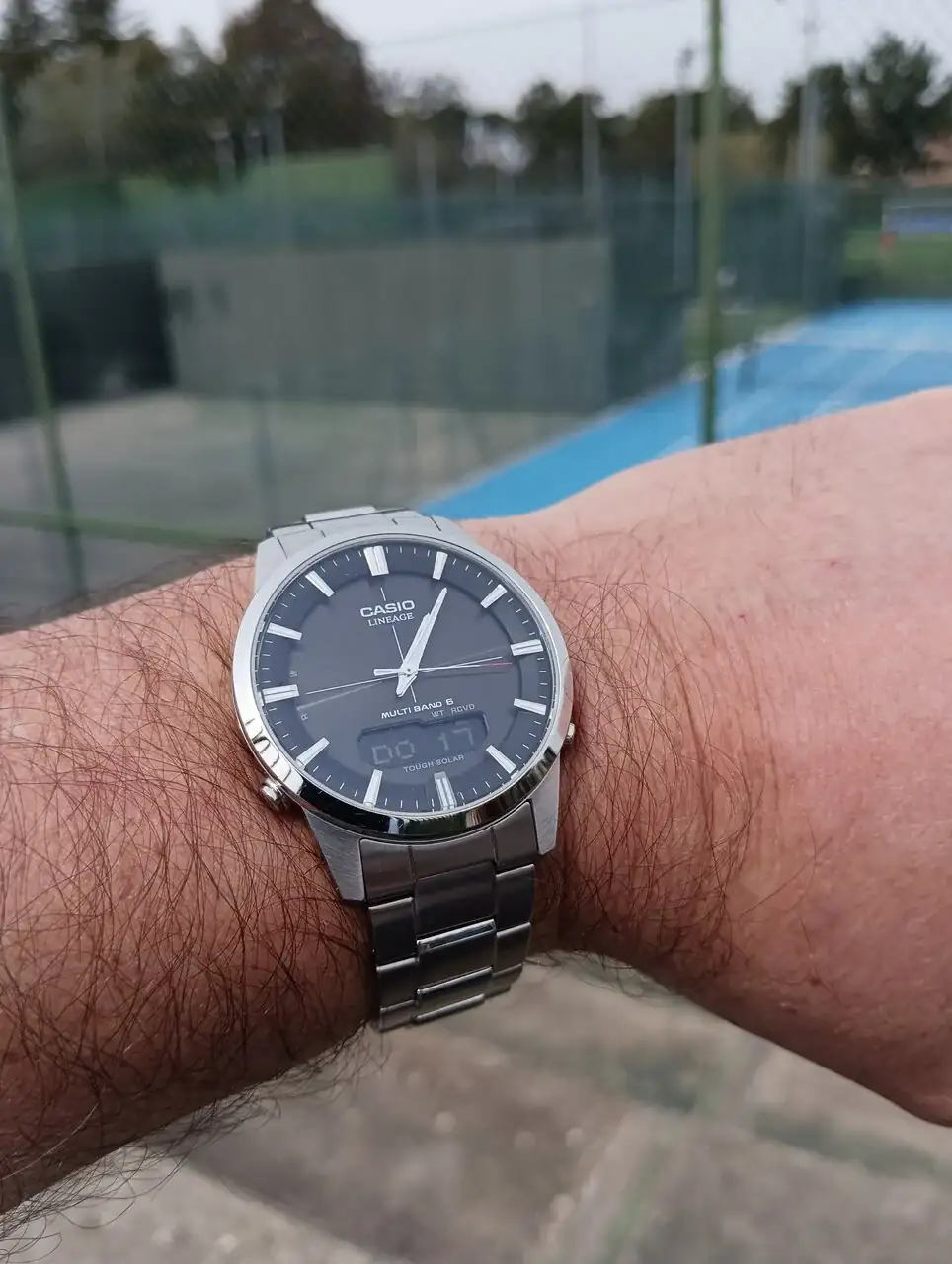 El reloj es grandote pero queda muy bien justo por lo q te comenté del tipo de reloj y del bisel tocho q tiene, es un reloj q, para mi gusto, queda muy bien siendo lo grande q es