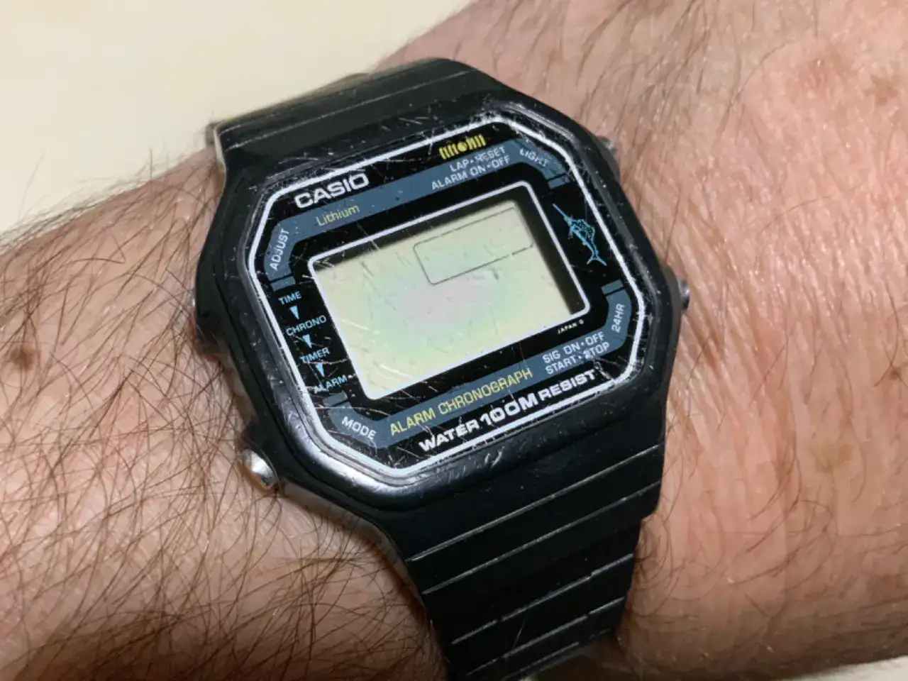 Lo mejor es que como un Casio como el H-101 estaba tan bien hecho y tenía tanta calidad, se puede usar hoy día como si fuese un Casio actual, con total confianza, a sus 44 años. Lo único un poco incómodo es el botón de ajuste, que le falta un rebaje a la caja por debajo para poder meter la uña y hay que usar algo para poder pulsarlo, pero por lo demás, como si fuese un reloj nuevo. Menudo tanque. Y muy bonito.