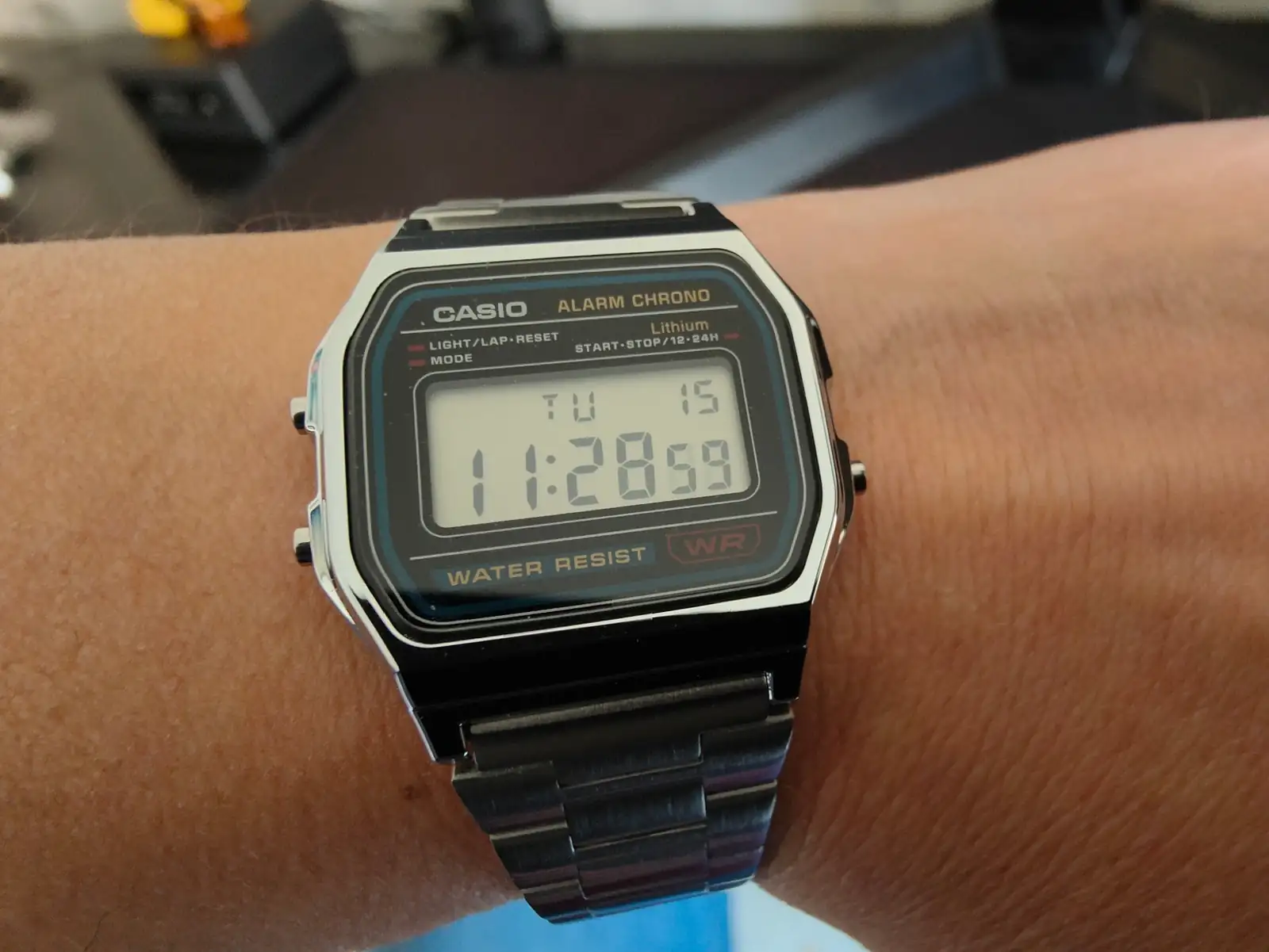 Un clásico elegante con una de las máscaras para mí más bonitas de todos estos serie A. También me gusta la caja con asas vistas. Son comodísimos, y más resistentes y duraderos de lo que su peso ligero y materiales hacen creer. Una de las cosas que me gustan es el sonido tan alto que tienen, mi A-164w es de mis Casio que mejor sirve de despertador, ya me gustaría un sonido así en muchos G-Shock.