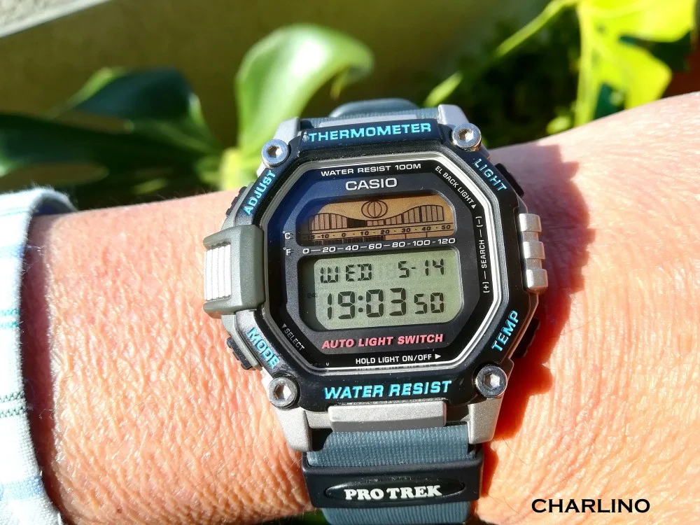Hacía tiempo que no sacaba alguno de mis PRT-10, y estos días que estamos de Luna llena me he acordado. Me gusta mucho el sonido alto y elegante de estos pioneros de la familia Pro-Trek y la retroiluminación azulada. Lo de arriba en el centro no es una calabaza ni una sandía, es la Luna llena 😂 Fuera de coña, también tenían muy buenos gráficos estos Pro-Trek antiguos, mejores y más legibles que muchos de ahora. Lo tengo con una de sus correas originales, con su logo de las montañas de Pro-Trek y todo, el mismo que siguen teniendo después de 30 años.