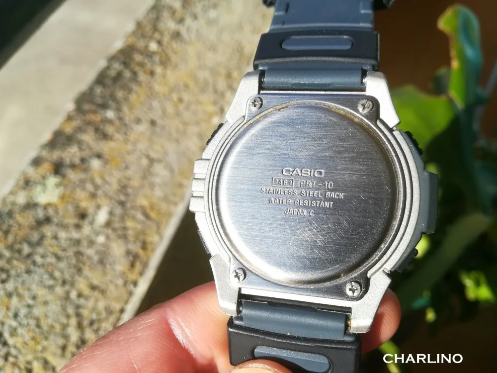 Muchas gracias Míster, sí sí, japonés de pura cepa 100%. Como este otro PRT-10 en versión silver también de los 90, Japan el reloj y Japan la correa. Los Pro-Trek ya sabemos que tienen una categoría y en los 90 aunque ya había mucha producción de Casio en Corea y otros países, estos aún se fabricaban en Japón. Este sí que está flamante. Al ser una versión silver, de las de caja pintada de gris plata como el Casio Royale, se moja menos y se cuida más para que no le salgan desconchones, y el negro es más de batalla.