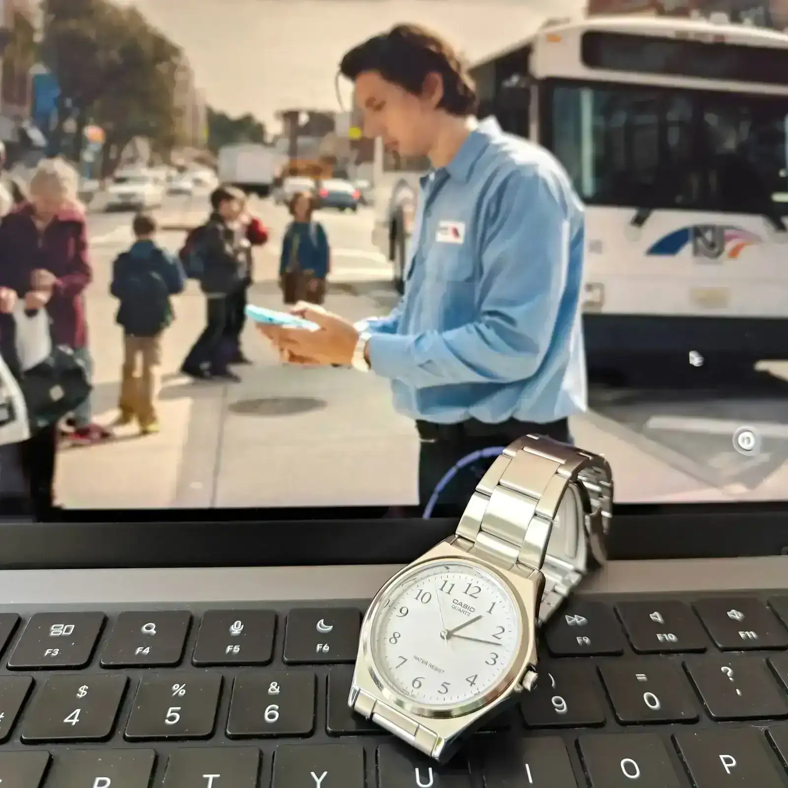 Lo luce el protagonista, encarnado por Adam Driver, en la película Paterson. Hace de conductor de autobús que, en sus ratos libres, escribe poesía. Te la recomiendo si no la has visto.