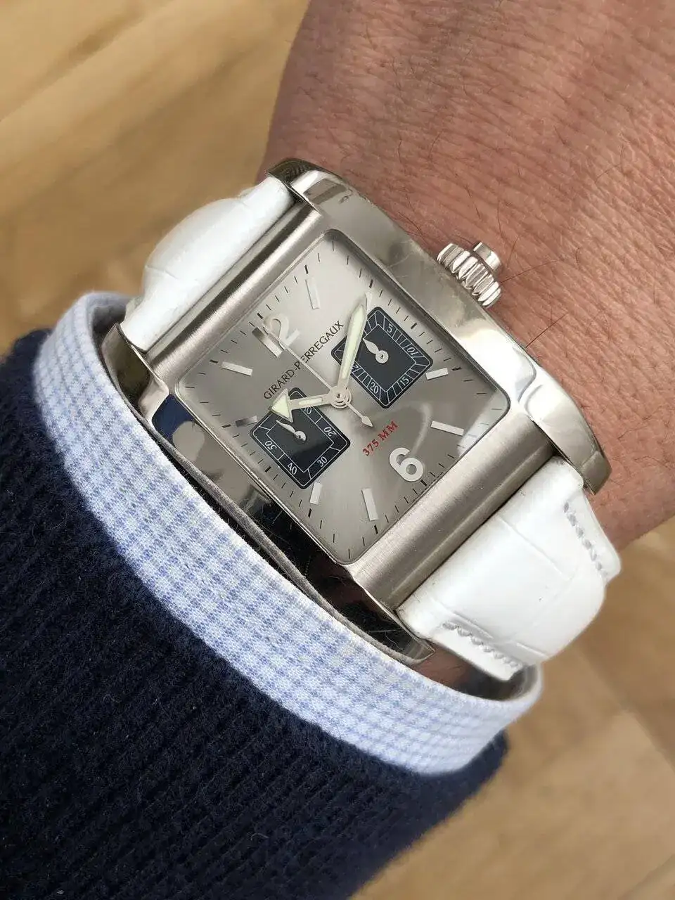 Un G.P., con mucha personalidad, con esa correa blanca esta que muy bien, felicidades.allá va otro de los raros que me gustan, GP monopulsante crono , ref 8050Ver el archivos adjunto 2794491