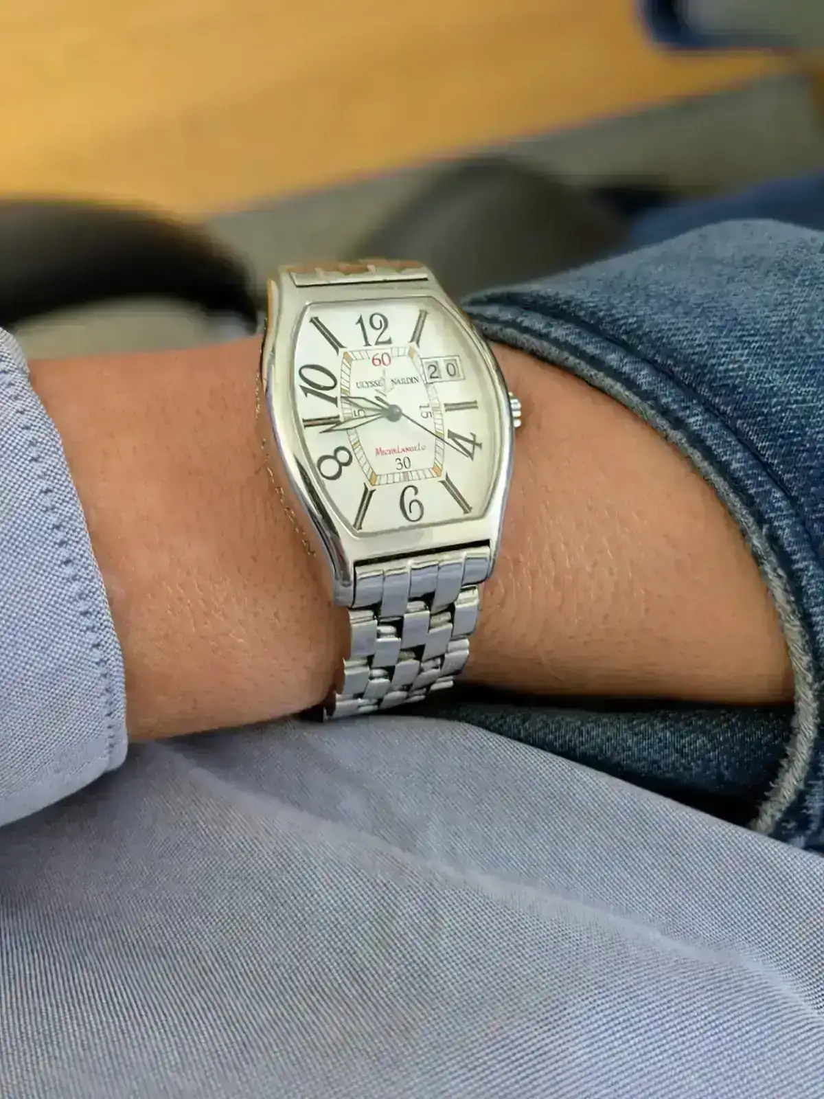 Buenos días, mi único no-redondo (por el momento)...de nombre Michelangelo. No me lo pongo mucho por tener un grosor algo elevado para mi gusto en un reloj de este tipo (unos 13 mm).