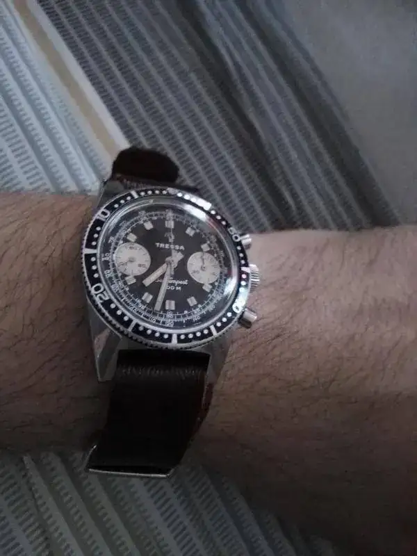 Buenas, si que es una maravilla de reloj, se trata de un Halios Laguna, y la verdad es que se ven muy pocos por el foro, bisel interno, ETA, zafiro y un buen lumen.Puedes darnos algún dato más acerca de esta preciosidad?