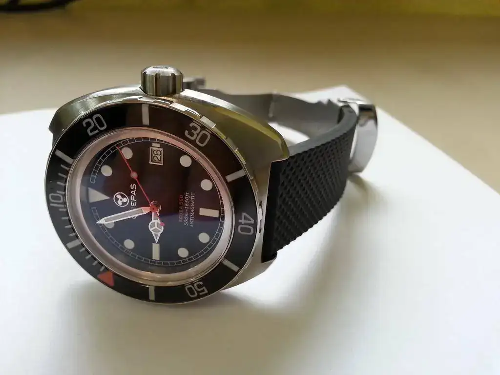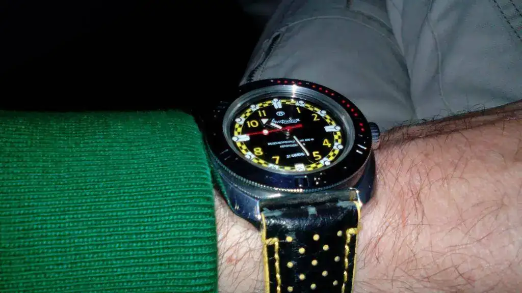 Vostok Amphibia, con caja ministry modificado con uno de los nuevos biseles de Vostok y correa de cuero a juego con el dial