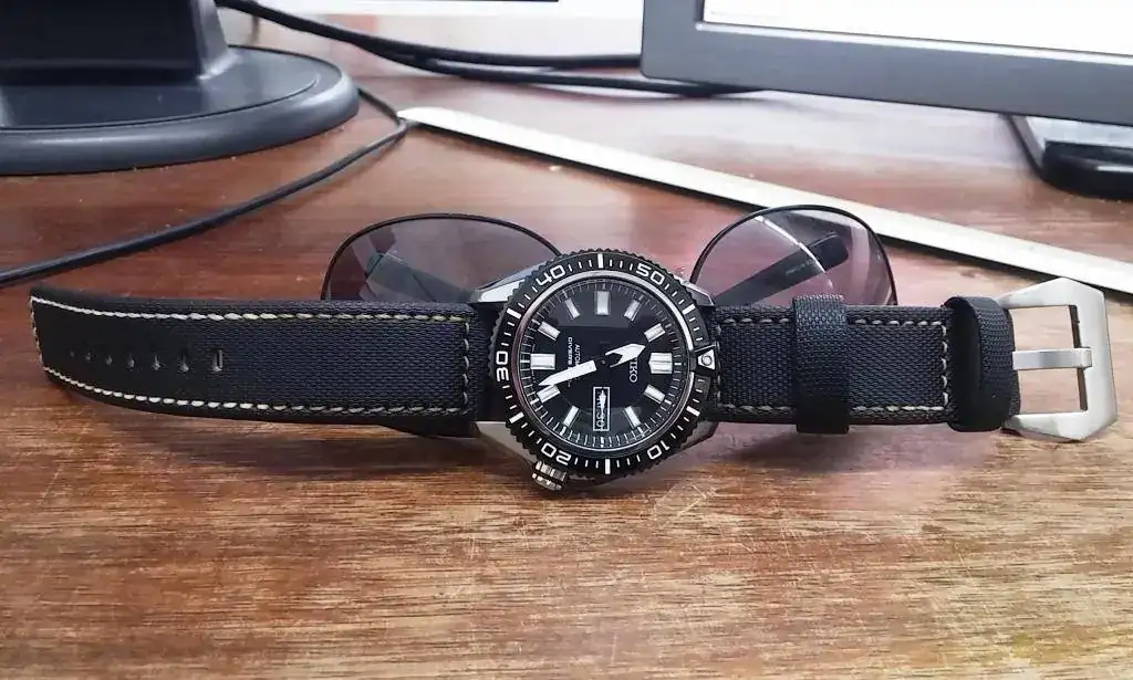 La correa le queda de fabula, si no es indiscrecion, que marca y modelos es ?Hoy un diver con correa de Nylon
