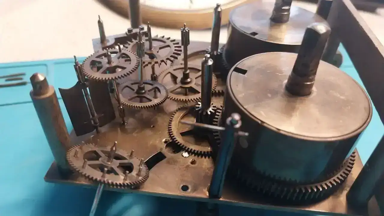 El reloj está funcionando sin péndulo. Estoy dejando que se destense el muelle.