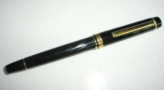 En la boquilla, de color negro, encontramos un aro de 2 m/m., chapado, en el lugar en que se une al cuerpo y otro de 4 m/m., que remata la boquilla en la parte que entra el plumín; este es metálico, chapado oro, y se aprecia una “A” mayúscula en letra inglesa inclinada, tal y como ocurre en el culote.