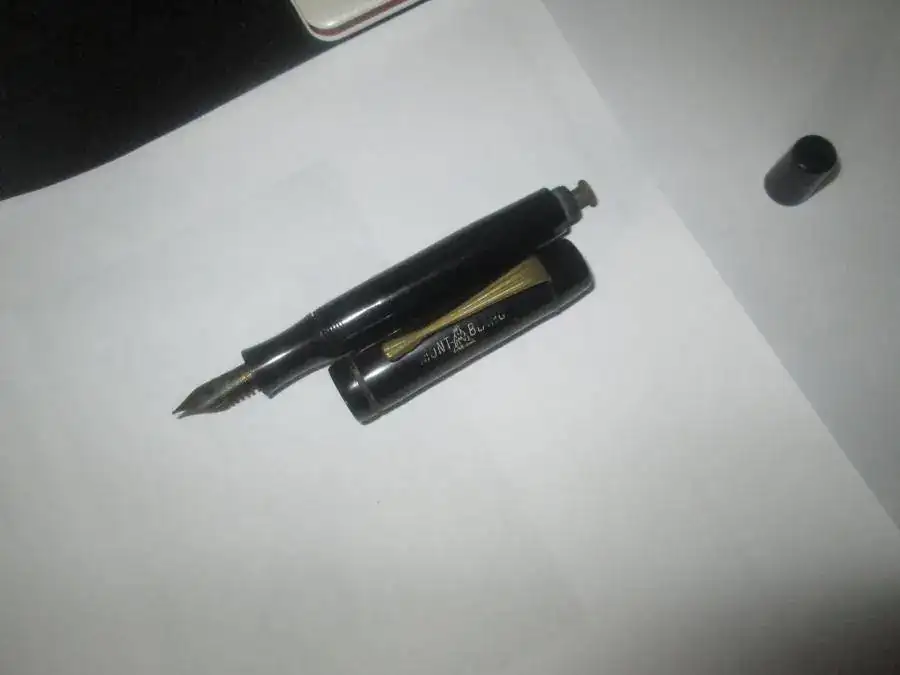 , y me consulta sobre modelo y época de la estilográfica. Sé que la foto no es nítida. Si fuese un inconveniente para su identificación puedo pedirle me envíe una foto más definida.De momento está inservible, en primer lugar porque no sabe abrirla. Yo tampoco.