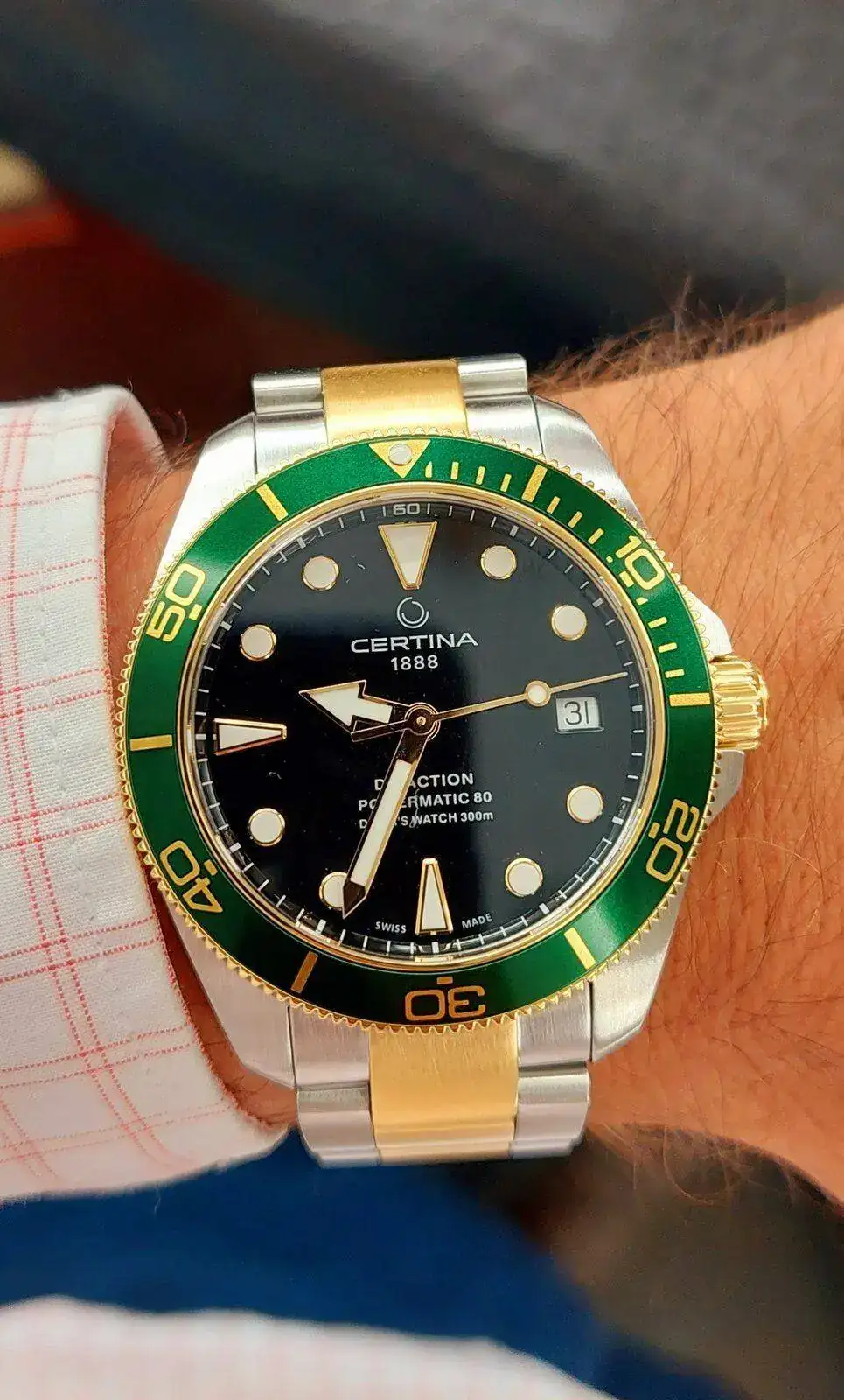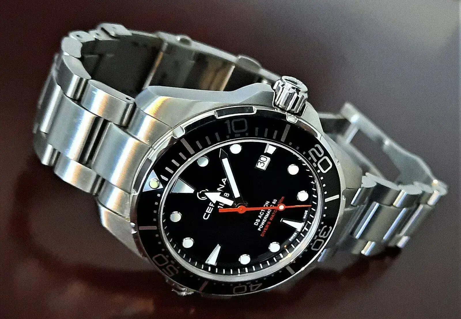 pd : respecto al modelo ds action diver 38mm , que sus medidas no den lugar a engaño , la teoría y el pie de rey marcan 38mm , pero a efecto visual en muñeca y gracias a la proporción esfera-bisel , da sensación de 40mm que no de 38... es un reloj que hace replantearte muchas cosas respecto otras marcas y modelos que triplican e incluso mas su precio... salvando las distancias claro esta , pero esta muy bien "trabajado" , sobretodo el cepillado de la caja y armis ...