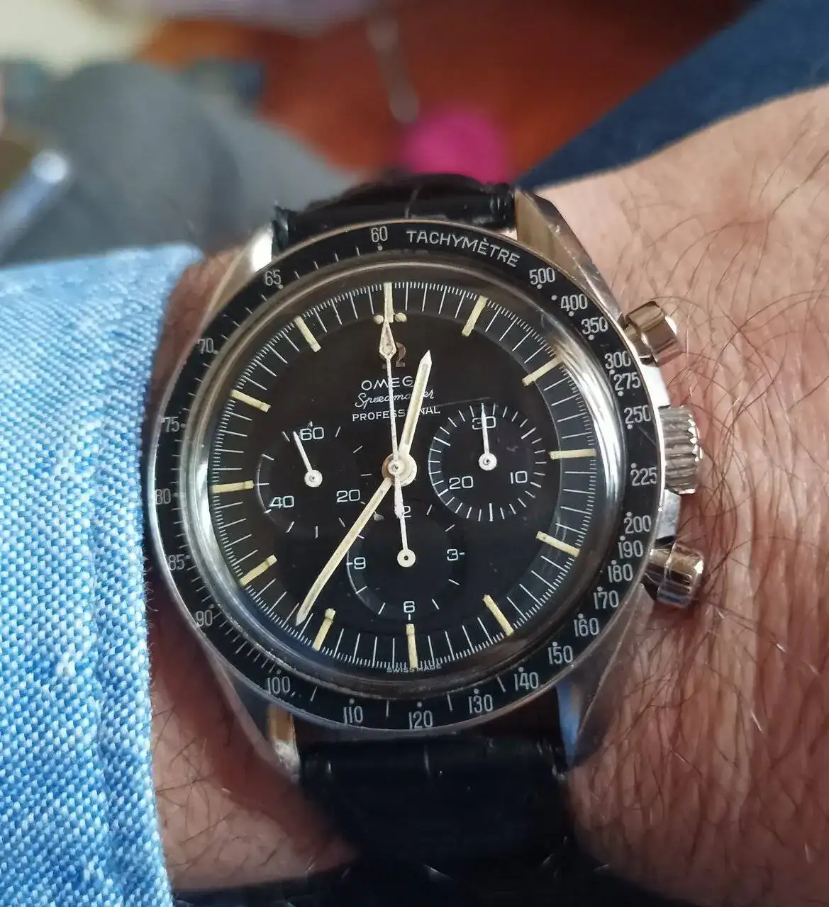 Gracias Javier, es un 321, de hecho, es el primer Speedmaster Profesional, el 105.012-63, de principios del 64. Omega fabricó 2.000 unidades y de ellas una pequeña cantidad salieron de fábrica sin las T de tritio en la esfera, este es uno de ellos, vino a mi por pura casualidad y muchísima suerte. Abrí un hilo en vintage en su momento:Qué pasada de vintage. Seguro que tiene una buena historia que contar.