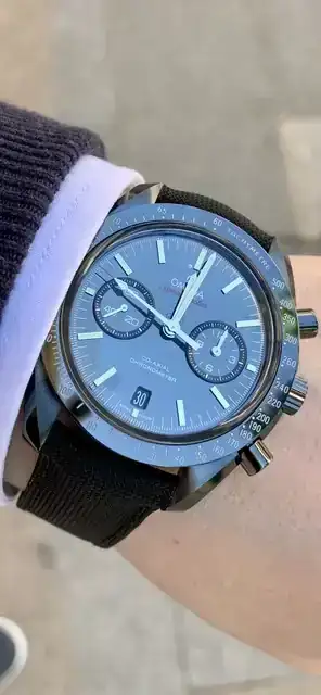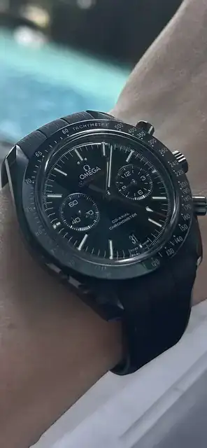 Gracias por identificarlo y por mostrarlo con más detalle compañero, muy bonito y muy misterioso, claro, es un Dark Side of de Moon, me gusta más con la correa de cordura de nylon que con caucho, pero no nos engañemos, al Speedmaster, todo le va muy bien, que lo disfrutes mucho y nos lo muestres por aquí frecuentemente. Saludos. 🤗Es el Omega Dark Side of the Moon más antiguo, con la correa de caucho del modelo nuevo