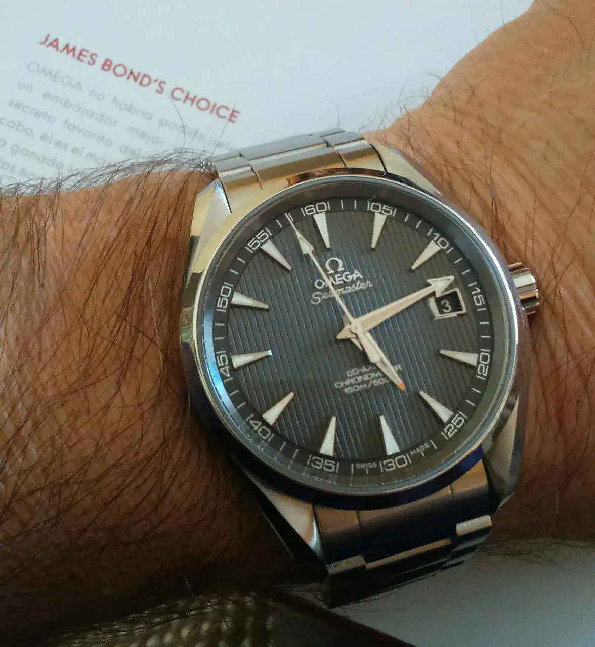 Lo de la esfera según la luz es una de las cosas que más aprecio en ese reloj. Es precioso ver como casi parece que tienes "más de un reloj" en una misma pieza. Si le has dado a me gusta en uno mío. Un Seamaster cosmic 2000, creo recordar. Es el primero que tengo, y estoy en reciente adquisición de uno nuevo(siento predilección por los antiguos). Espero que me dediques alguna foto más ya que compartimos amor por la marca. 🙂Gracias Sterling, y en vivo gana muchísimo porque como lleva tratamiento antirreflejo en las dos caras parece que ni siquiera lleva zafiro y se ven las agujas e índices directamente con unos facetados y reflejos increíbles y luego los matices de la esfera en función de la luz van desde un gris claro a un gris antracita, casi negro. El brazalete es precioso, todo cepillado, muy cómodo, elegante, y el cierre de mariposa con el logo de Omega es muy discreto y eficaz.
