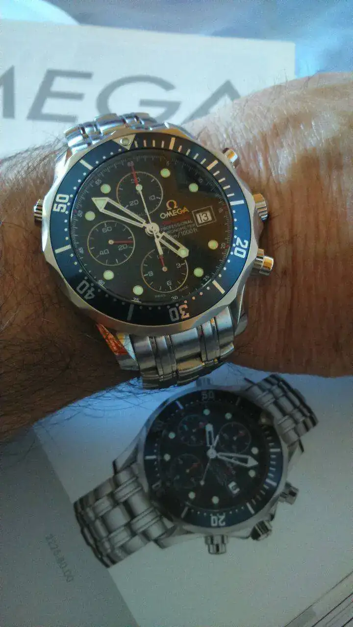 Pues mi hijo o su hijo, que es de ambos, en día de playa le ha quitado a su madre el Seamaster de 36mm. y ahí le capturé en la terraza del chiringuito y se metió al agua con él, peligro, pronto pedirá uno, en azul, por supuesto: