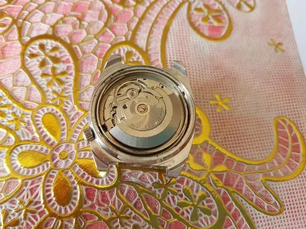 4-5) ca. 1975: F5, Dugena 3338, Swiss Made, 25 Jewels - Patented; Incabloc