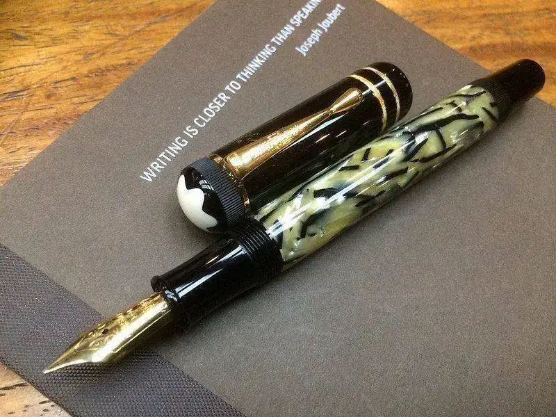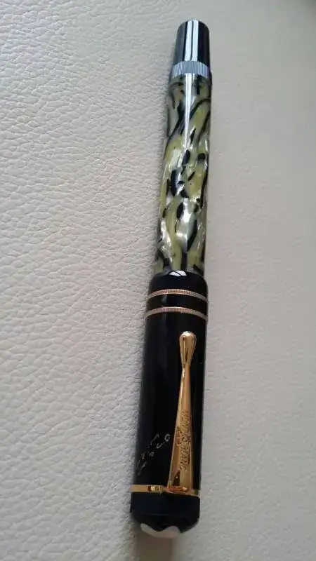 La MB Oscar Wilde si la conozco un poco y me encanta. Es una de las más grandes en tamaño de la serie de escritores, y resulta impresionante en la mano. El plumín es muy suave y algo menos rígido que los modelos de serie normal, aunque en la decoración no se complicaron la vida y es un poco soso. El resto de la pluma es soberbio. El celuloide del cuerpo es muy bello y el resto del cuerpo y capucha son de muy alta calidad en los acabados. Los detalles de plata vermeil le dan un toque de lujo sin ostentación excesiva. Es una de las más equilibradas de la serie de escritores, aunque no se encuentra entre las más valoradas, por suerte para los bolsillos modestos.