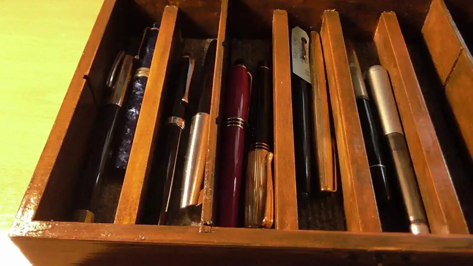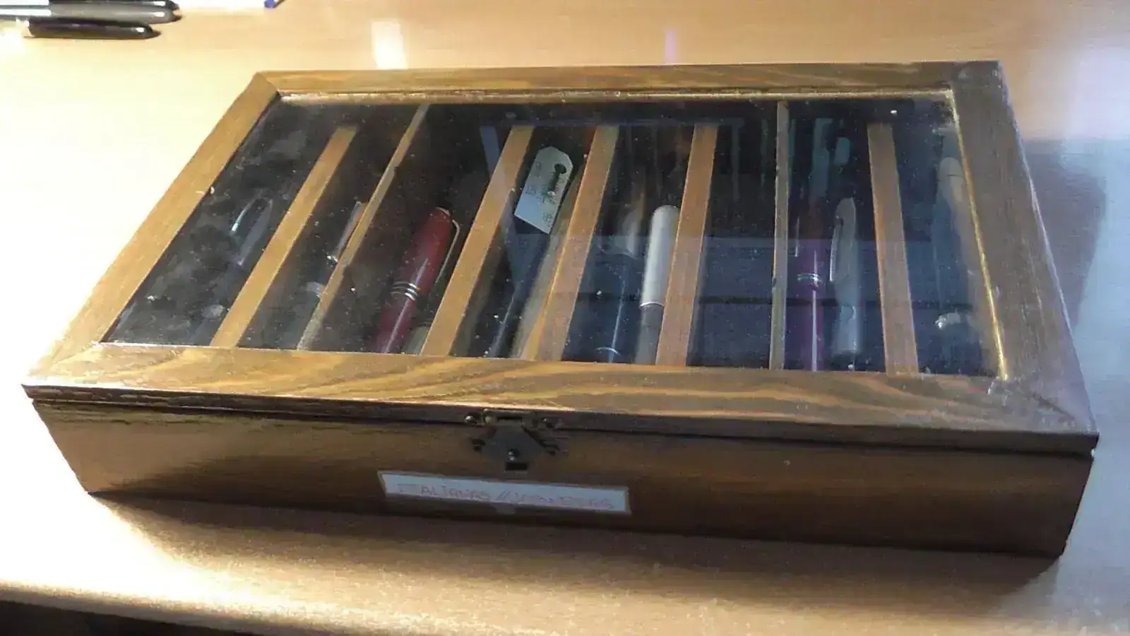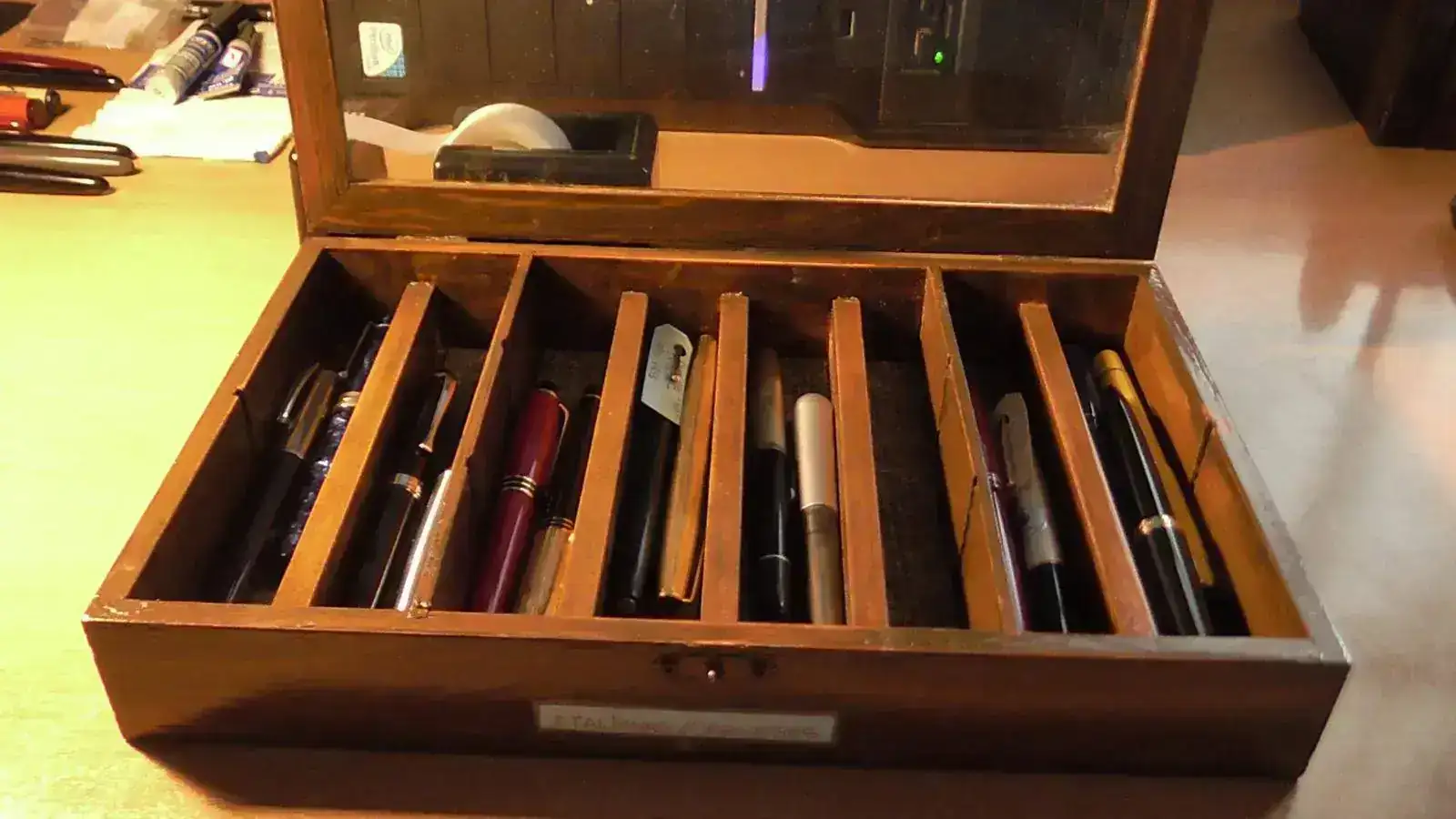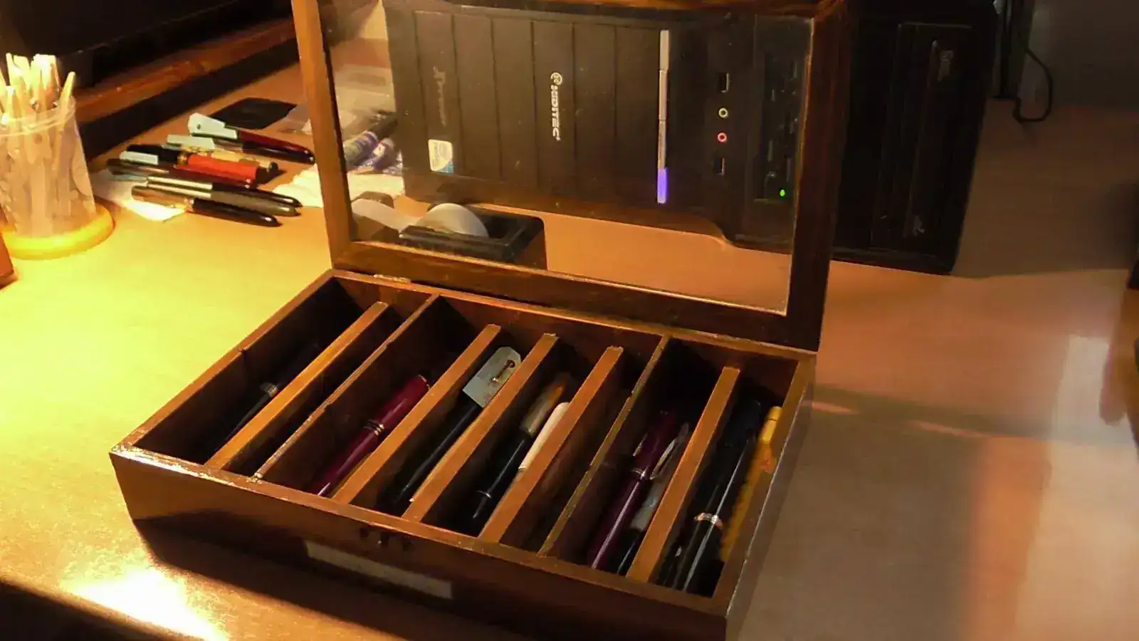 Espacio para 24 plumas: 12 arriba y 12 abajo.