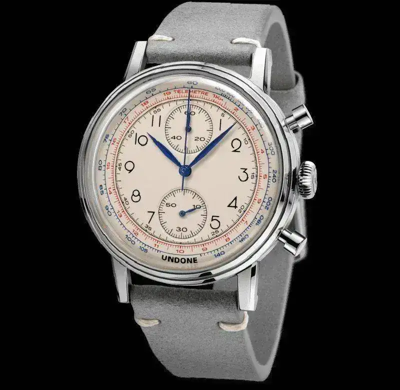Este reloj con los totalisatores a las 12 y a las seis simula el calibre VENUS 170.