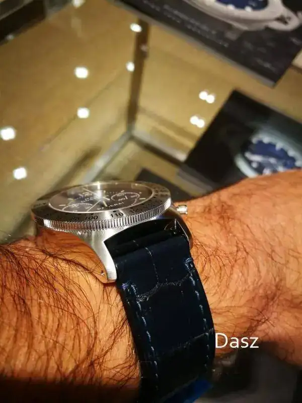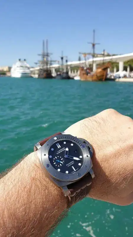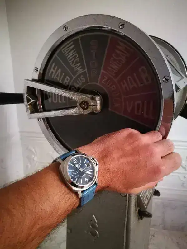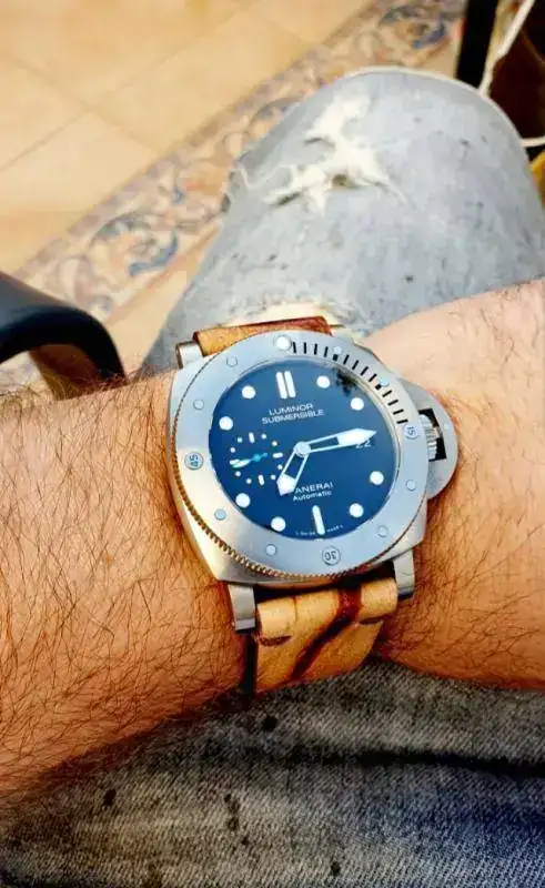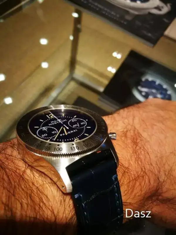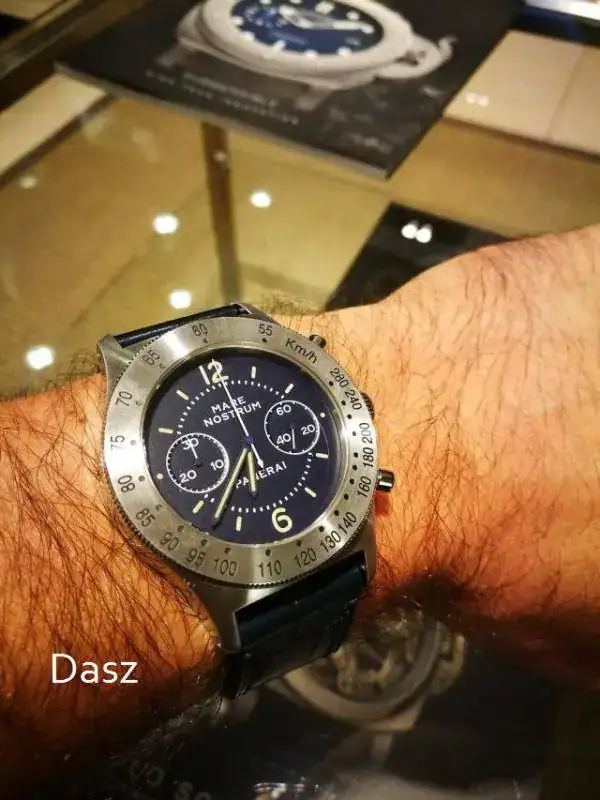 Me encanta como queda la esfera azul con los índices tostados muy vintage, Mare Nostrum es el primer cronógrafo de Panerai, destinado a los oficiales de cubierta de la Armada Real Italiana.