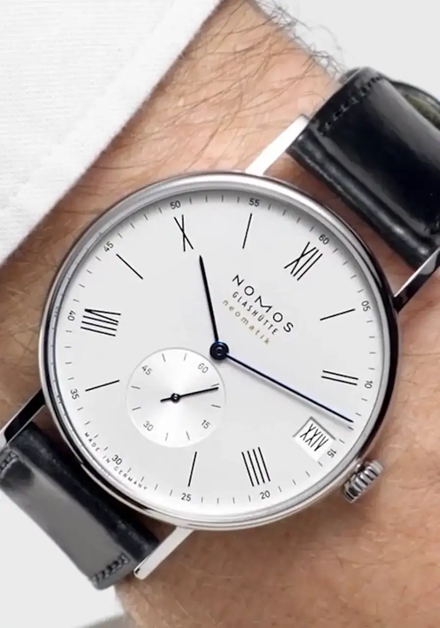 Nomos y estableció sus talleres en Glashütte junto a algunas de las marcas alemanas más veneradas. Con su moderno estudio de diseño Berlinerblau con sede en Berlín, Nomos ha traducido las tradiciones relojeras alemanas a un lenguaje más contemporáneo, minimalista e inmediatamente reconocible. El último modelo es una versión renovada del Ludwig neomatik 41 date con un giro sorprendente. Aunque las ventanas de fecha son fuente de mucho debate en la comunidad relojera, el Ludwig subraya su temperamento clásico al mostrar la fecha con números romanos.