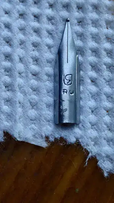También tengo una foto del plumín, pues pude desmontar toda la pluma, que por cierto es de carga por pistón enroscado. El plumín es éste: