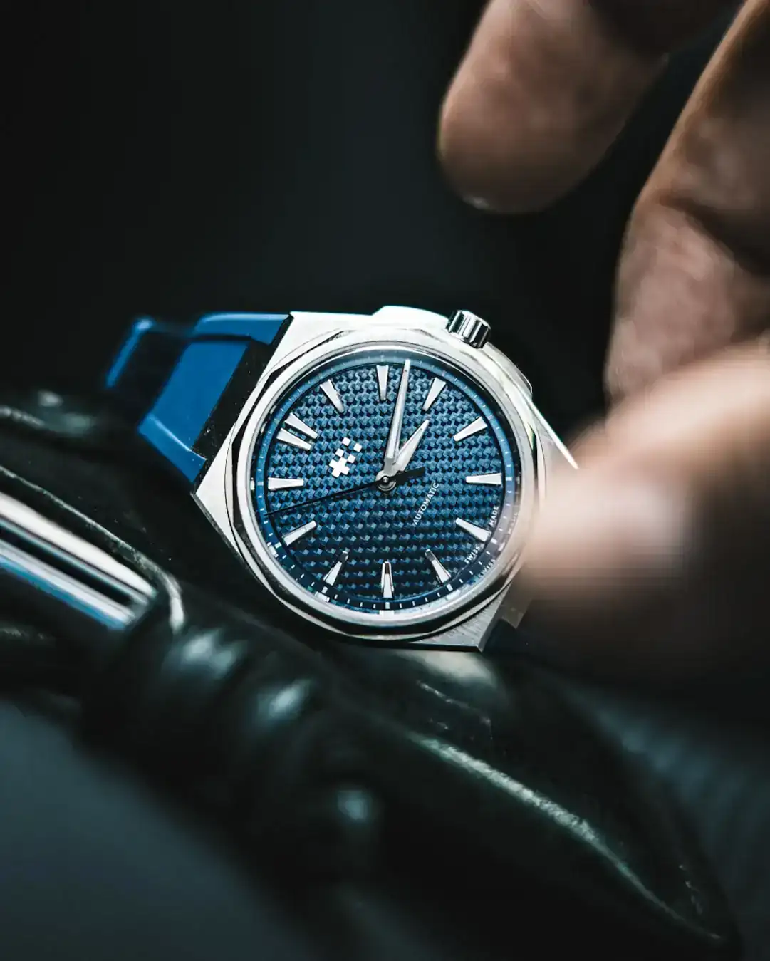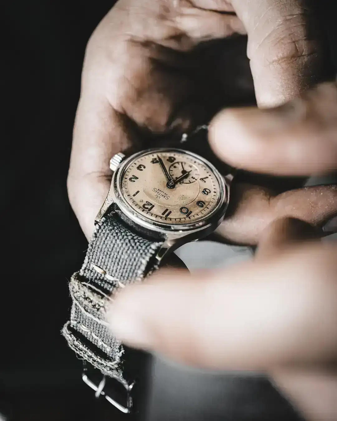 Creo que lo comenté en algún post. La correa me la ha regalado un miembro de WatchCrunch; me la hizo él con una tela de mapàs de los 50, de la misma época que el reloj. ¡Le queda genial!Y a mi tu vintage Smith con esa correa a juego tan bien elegida. Un saludo