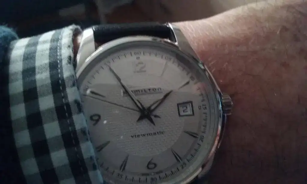 3. El Hamilton Jazzmaster Viewmatic de 40mm. El más barato, por menos de 500 dólares en internet. Clásico, sobrio y más polivalente. El más armonioso, en un sentido estético global, de los 3 que he nombrado. Nunca te cansarás de él.