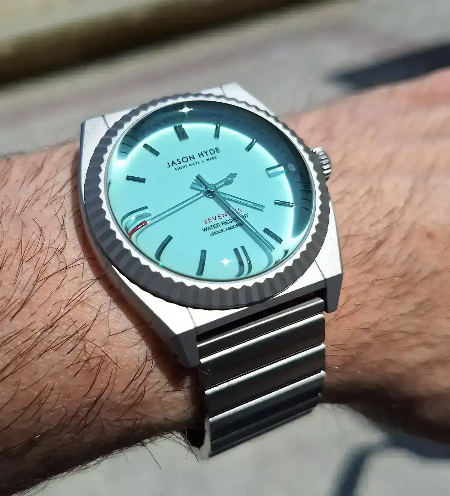 Gracias compañero! Es un reloj muy sencillo, pero me gustó en su día cuando lo ví por Internet buscando diales turquesa y verde menta.Muy guapo ese reloj y menudos brillos y efectos los del cristal![]()