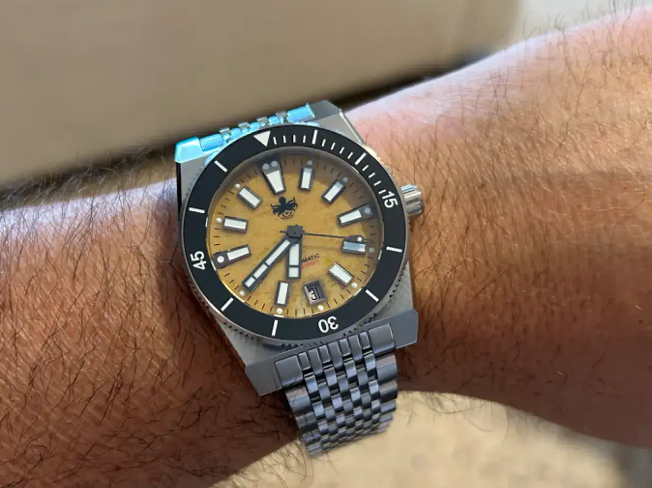 . Mi experiencia tanto como con el reloj, como con la empresa es muy muy buena. A mí me pareció muy bonito, aunque eso es subjetivo, y no me defraudó en ese aspecto cuando lo recibí. Buscaba un diver azul con esta estética, sin calendario, quería ( y no tenía ninguno ) un brazalete granos de arroz y alternarlo con una tropic.