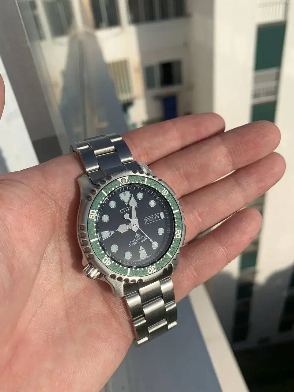 Creo el hilo para a ver si me ayudáis a decidir cuál reloj me quedo. Hace tiempo pregunte acerca de qué reloj comprar con 200€. Me recomendasteis mucho el Citizen Promaster, Seiko 5 Sports y Orient Kamasu III. Viendo las fotos y las características me decanté por el Citizen (en verde). Pero una vez en mis manos no me convence del todo (no sé si devolverlo) y me parece estéticamente un pelín más bonito el Seiko. El Kamasu aunque sé que tiene cristal de Zafiro es el que menos me llama la atención.