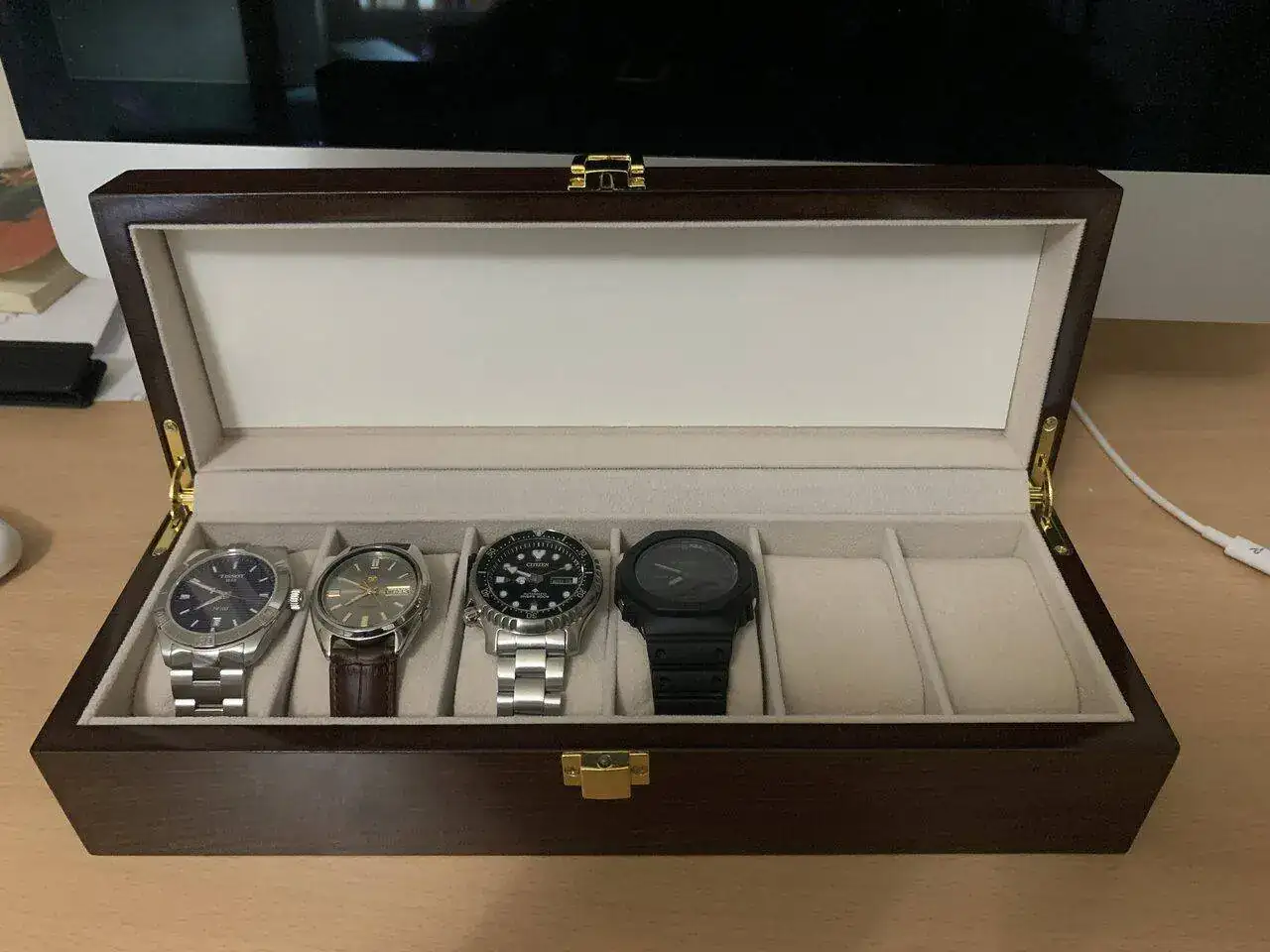 Adjunto imagen del Citizen que me ha llegado y del Seiko que sería la otra opción. También dejo una imagen de mi humilde relojero.