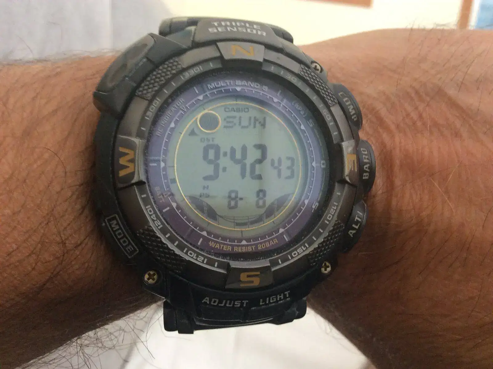 Sin duda alguna para ese caso el Casio Pro trek: zafiro, titanio, multiband, fases lunares, mareas, alarmas, calendario, termómetro, barómetro, altímetro, cronómetro, cuenta regresiva, brújula, etc...