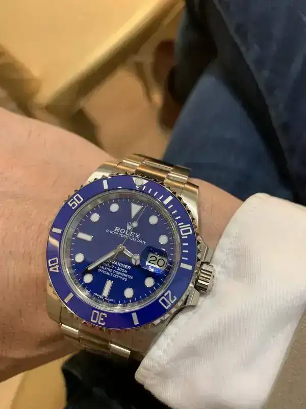 Ver esa esfera pitufo en directo tiene que ser como para un niño ir a Disneyland, simplemente increíble.Este, si, no deja de ser un submariner azul, misma maquinaria y lo pagas 4 veces más, de metal noble, más blando... pero lo tengo siempre ahí.....