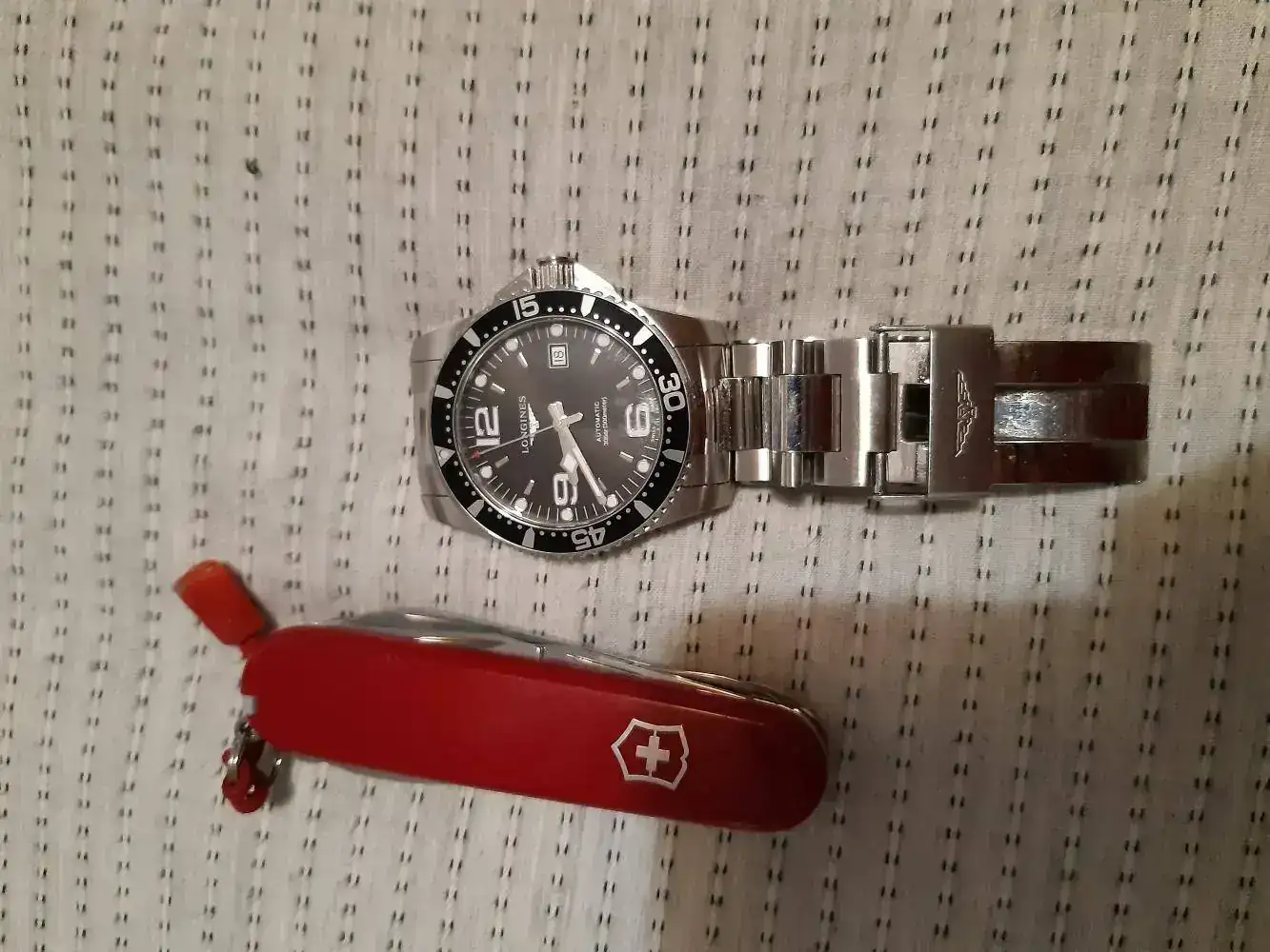 No eres para nada raro compañero, yo tambien en casa uso reloj y siempre que salgo a la calle, llevo una navaja de bolsillo, desde hace unos meses, cargo esta , de los chinos, pero me gusta por el clip y su apertura con una mano, desde que era adolescente cargo siempre una navaja de bolsilllo, es es una foto de ahora mismo, solo me quite el reloj para hacerle la foto, que por cierto este reloj fue mi primer automatico y lo considero especial.