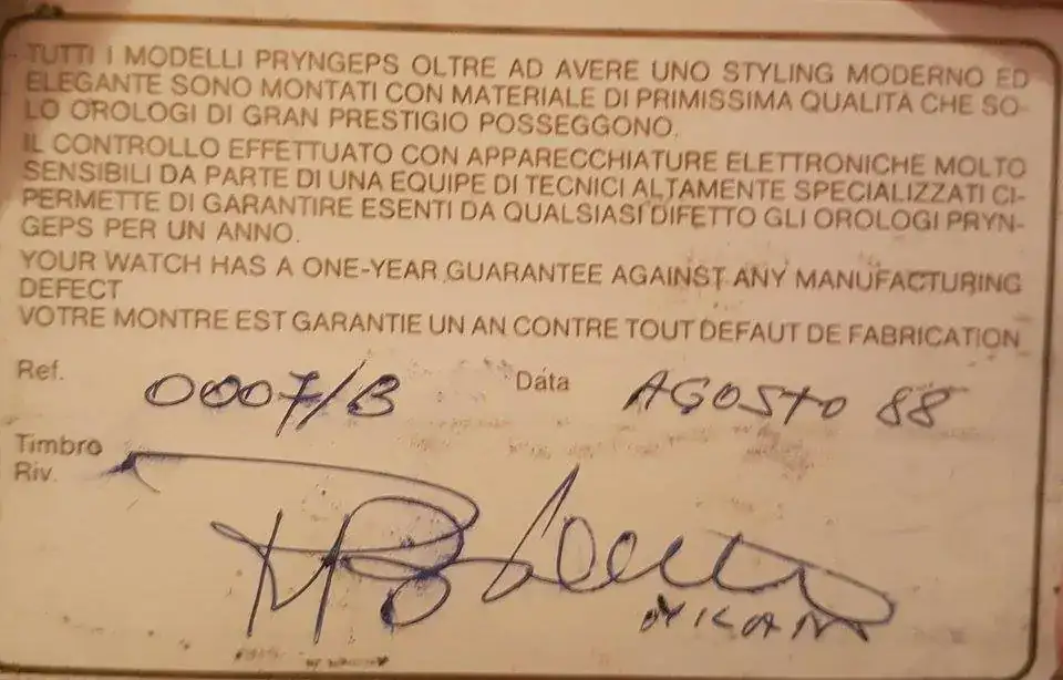 Primer reloj, marca pryngeps adjunto imagenes de la garantia con fecha y el estuche en el que venía: