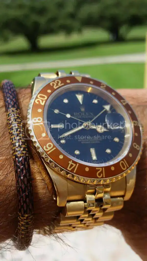 Estimado J.M.R.,Me da muchísima penaver una unidad de GMT 1675 con la Carrura en tan buen estado, portando esas agujas de SuperLuminova en un maxiDial pintado en Luminova también cuando llevabas anteriormente una preciosa esfera Long E de tritio tan bonita. Cambiar esas agujas y esa esfera es una autentica pena.