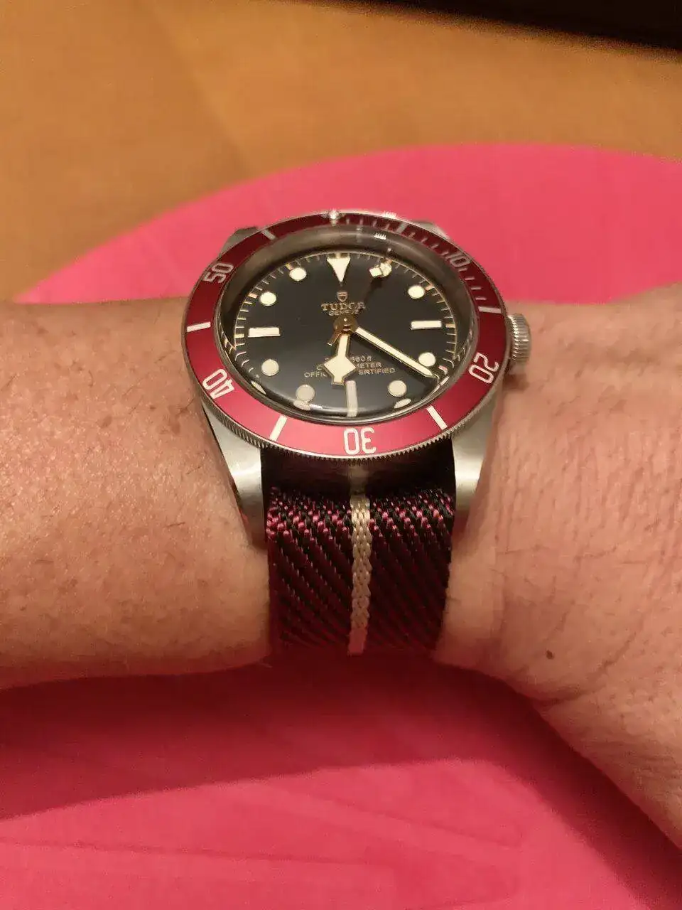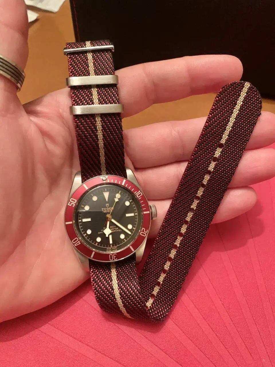 Se la he puesto para ver cómo le quedaba de cara al próximo verano, le da un toque distinto pero ya lleva colocado el armis…el verano que viene se la pondré algún día 😉Si q le queda buen compañero,pero yo soy de armis,todos mis relojes menos dos son con armis