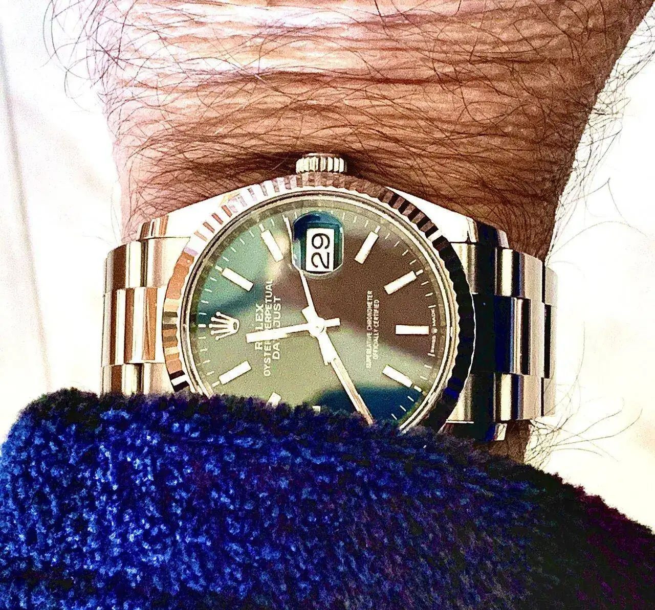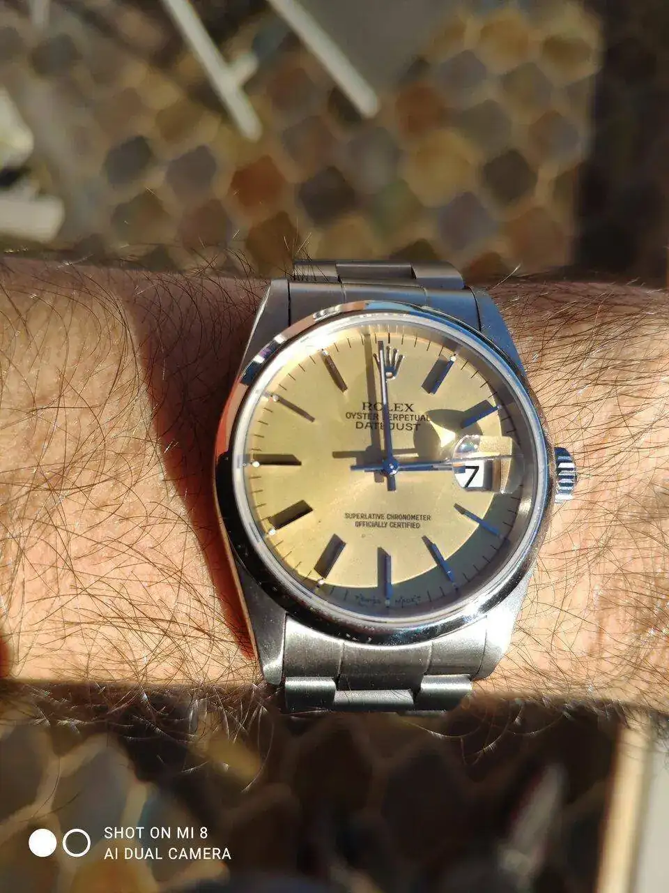 Y que lo digas. Joder, está precioso, muy uniforme.Un 16200 esfera plata que ha mutado y tiene un color amarillento muy chulo.