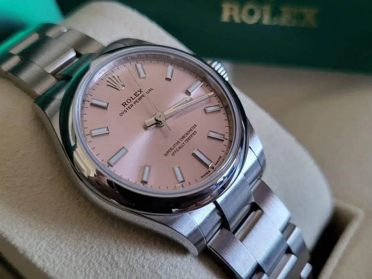 La última vez que estuve en el CO me los ofrecieron, estuve a un pelo de comprarle el rosa a mi mujer, me dijo que ya tiene demasiadosEs verdaderamente bonito, no me importaría tenerlo en 36 mm. De hecho me estoy planteando incluso repetir modelo aunque dos OP en una colección pequeña...