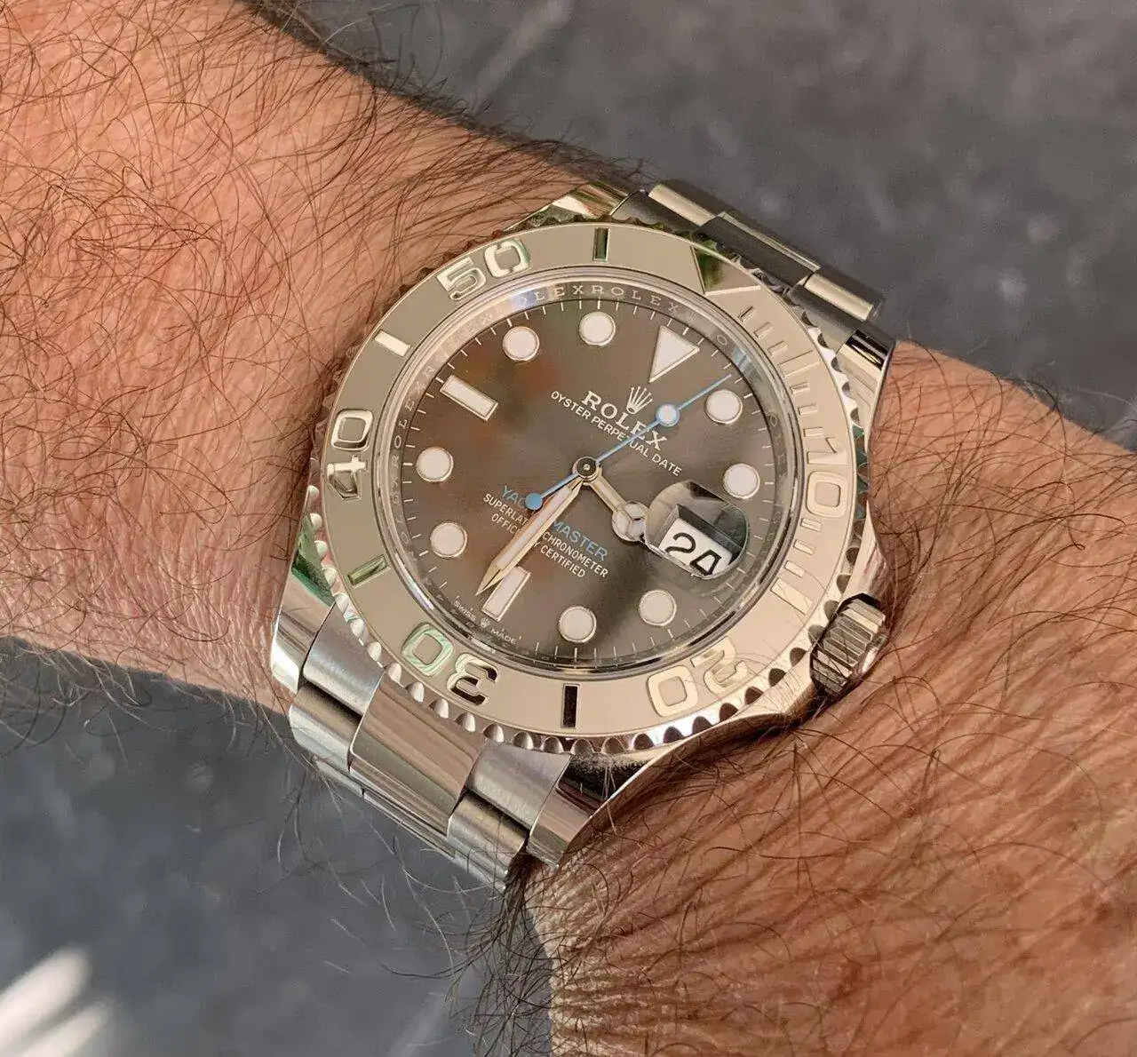 Pues te has contestado a ti mismo. A por el azul y pon fotos pronto.El tuyo le he visto y me lo he probado y sinceramente, es precioso. Además de increíblemente cómodo. Es sorprendente el Yatch Máster, por no hablar del bisel de platino que es una obra de arte. Pero ya tengo un reloj con ese color de esfera y los esfera azul deportivos me vuelven loco.